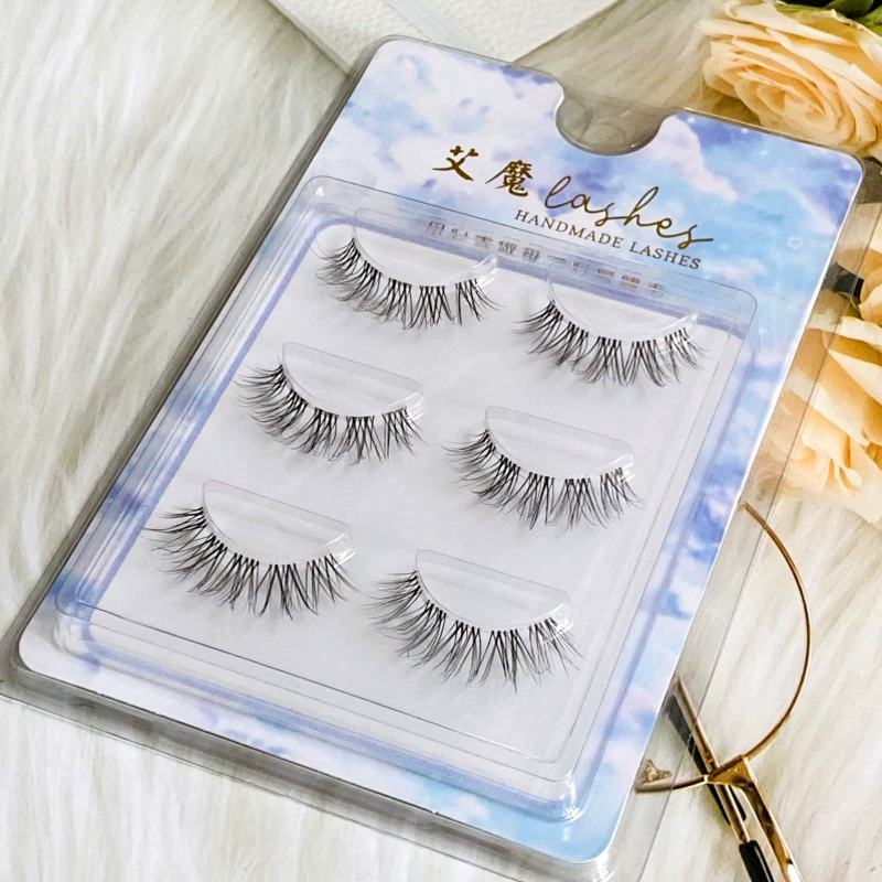 | nameOriginal | False eyelashes, transparent stems, messy simulated mixed race makeup, natural |
