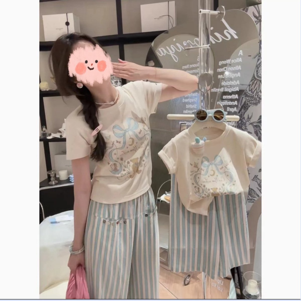 | nameOriginal | Family Clothing Korean Style New 2024 Summer Design Bow Short Sleeve Striped Wide Leg Pants Mother and Dresses |