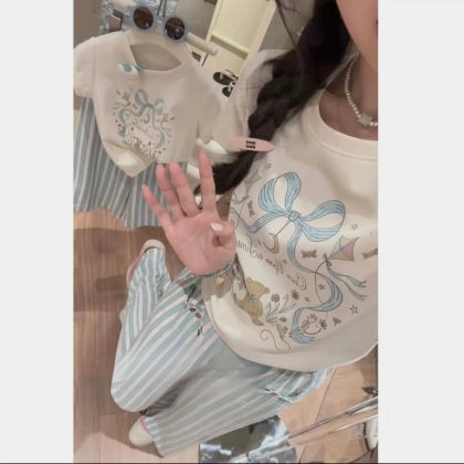| nameOriginal | Family Clothing Korean Style New 2024 Summer Design Bow Short Sleeve Striped Wide Leg Pants Mother and Dresses |