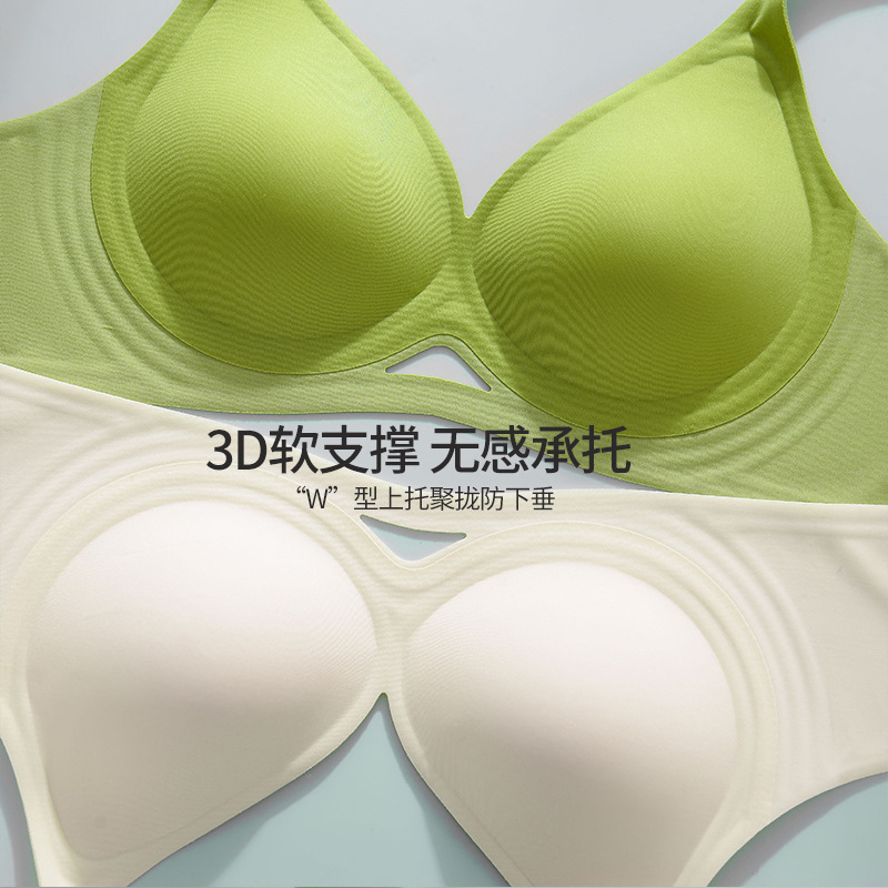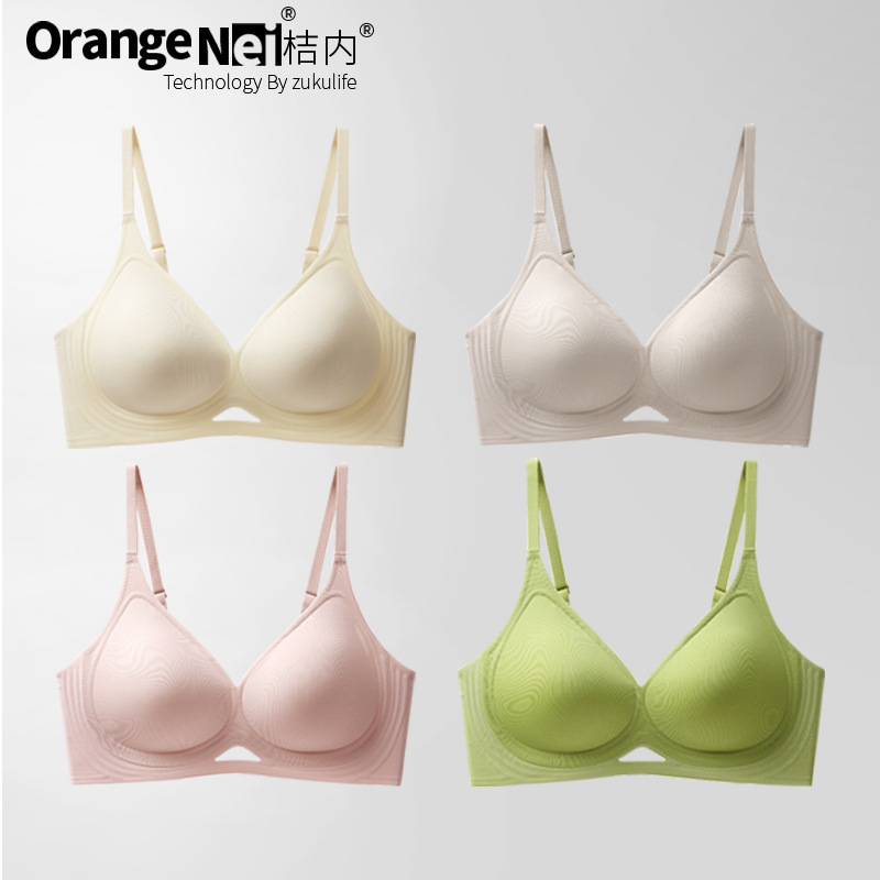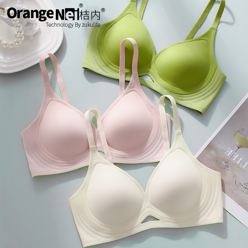 | nameOriginal | Family cool life orange inner 3D soft support strip underwear suit women's gathered glossy seamless bra thin big chest summer |