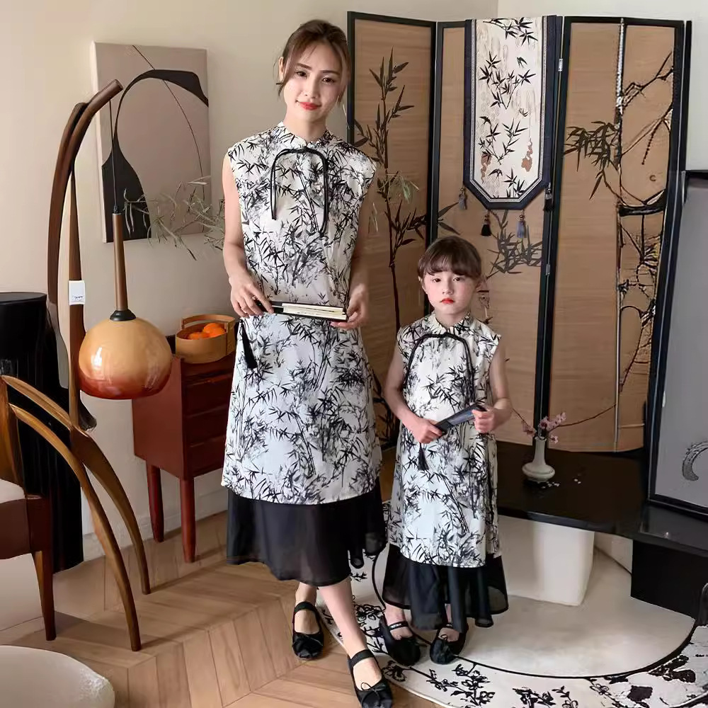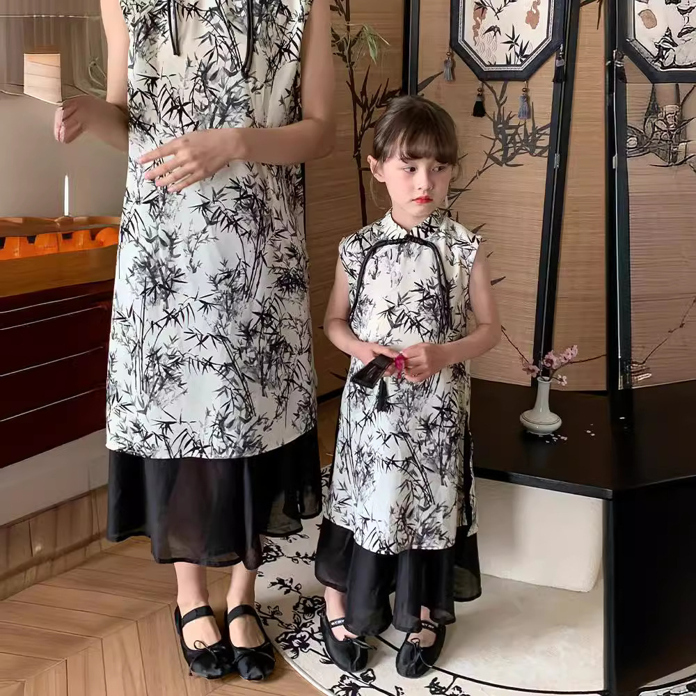 | nameOriginal | Family Dress Cheongsam 2024 Summer New Girls Ink Painting Girls New Chinese Floral Cheongsam Dress Fashion |