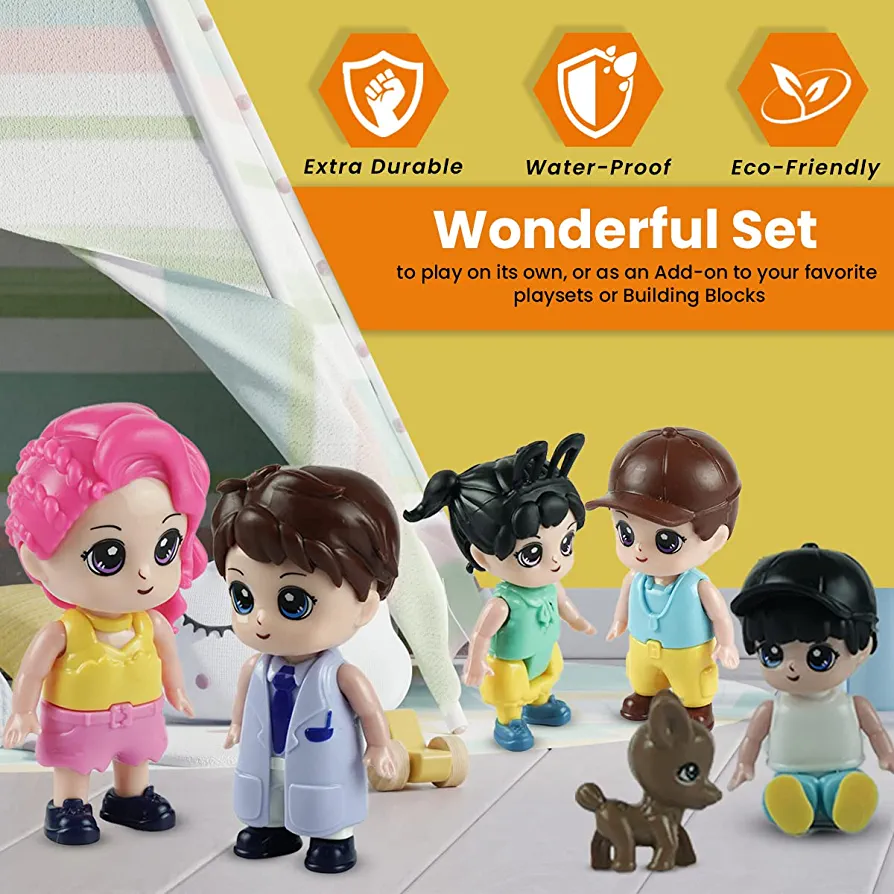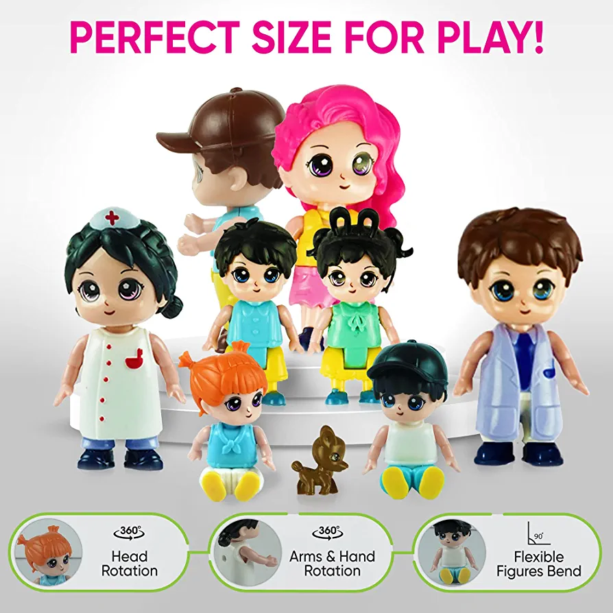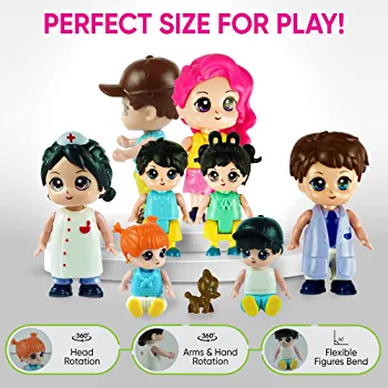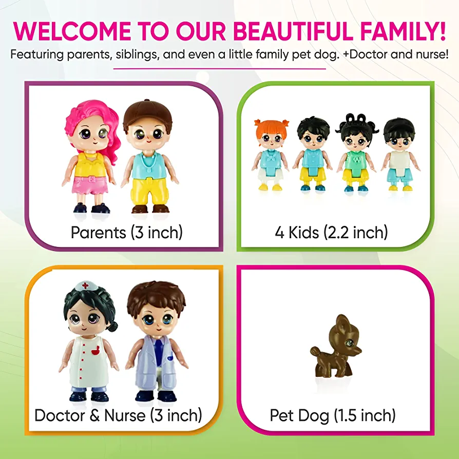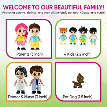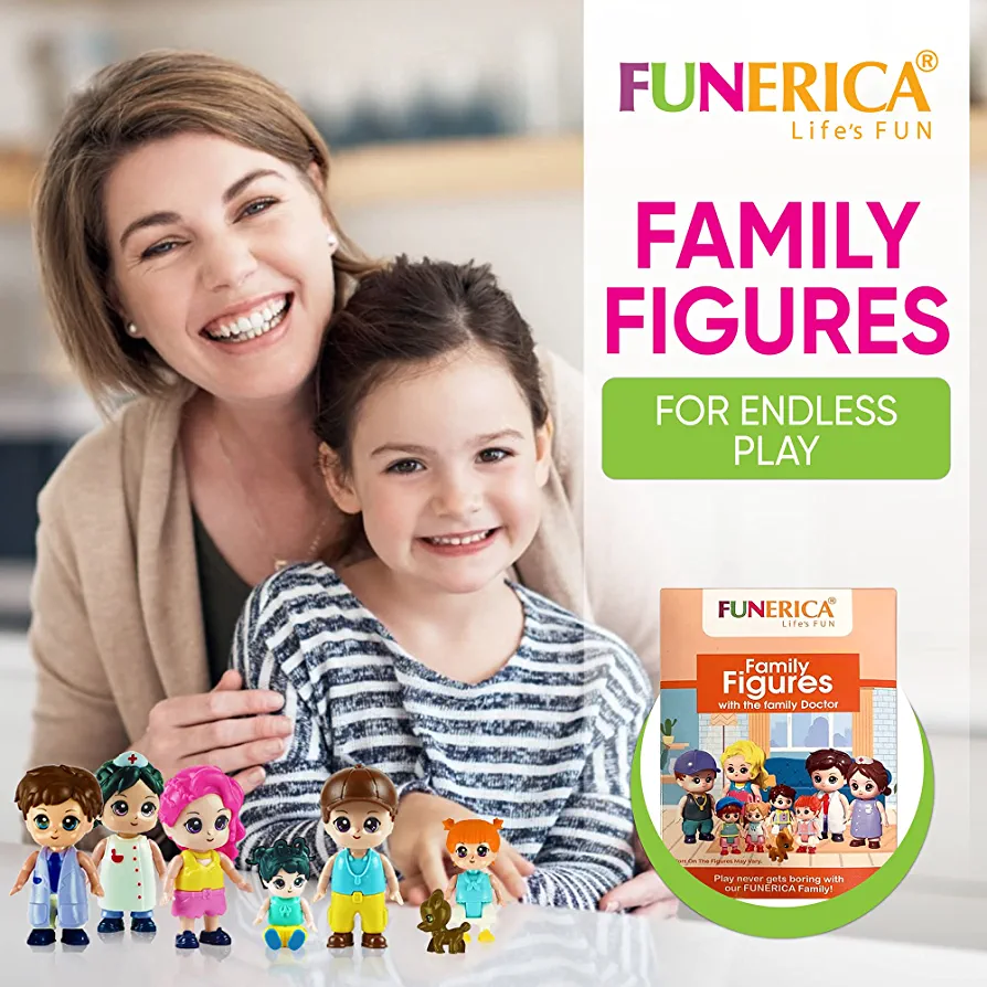 | nameOriginal | FUNERICA Family Figures Set – Dollhouse People Dolls Featuring Dad, Mom, Sibling Boys, Girls, and Puppy Dog Pet – Little People Toys Play Doll House Accessories – Kids Toy House Play Figure Playsets |