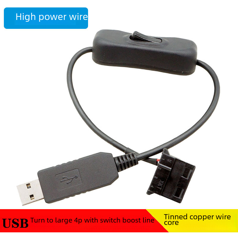| nameOriginal | Fan 5V to 12v boost line USB to 4Pin chassis fan switch power cord computer fan adapter |