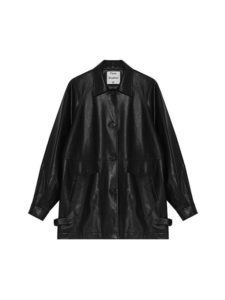 | nameOriginal | Fan Luo 2024 Spring New lazy retro style black lapel green PU leather motorcycle jacket coat for women |
