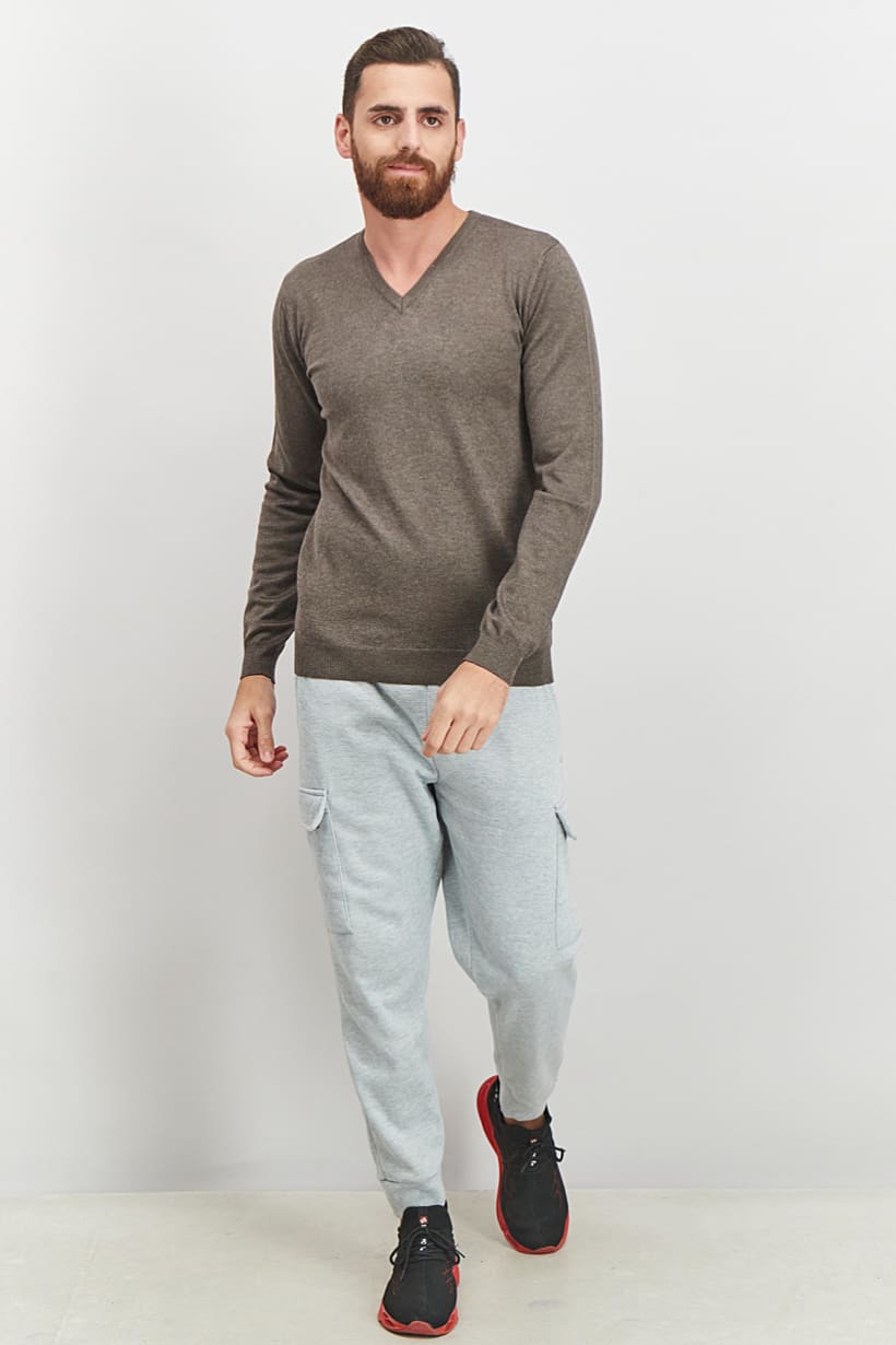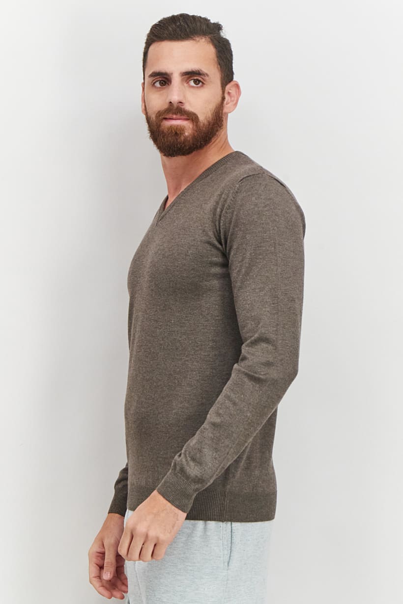| nameOriginal | Men V-neck Knitted Long Sleeves Sweater, Fango Melange |