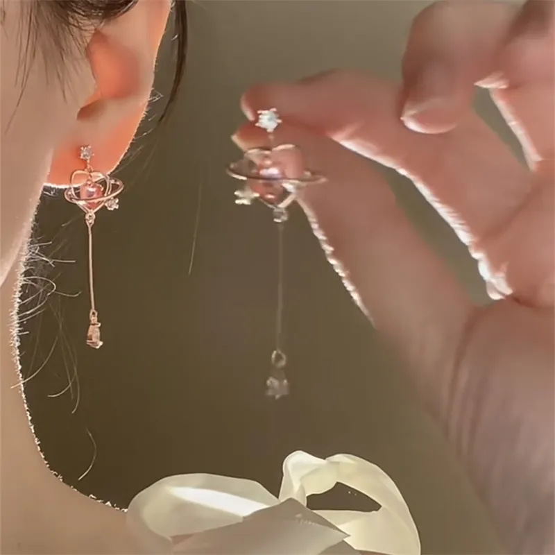 Fangyuan Face Sky Vegetable Ear Clip Female ~ Niche Design Tassel Long Earrings Autumn and Winter Joker Temperament Advanced Earrings