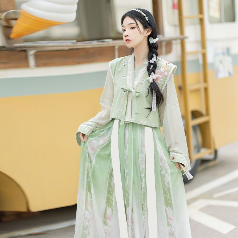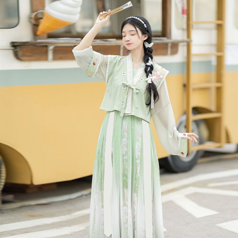 Far Mountain E Dai Adult Hanfu [Mu Qing Si] Tang Dynasty Folded Skirt Women Improved Daily Elegant Fairy Spring and Summer
