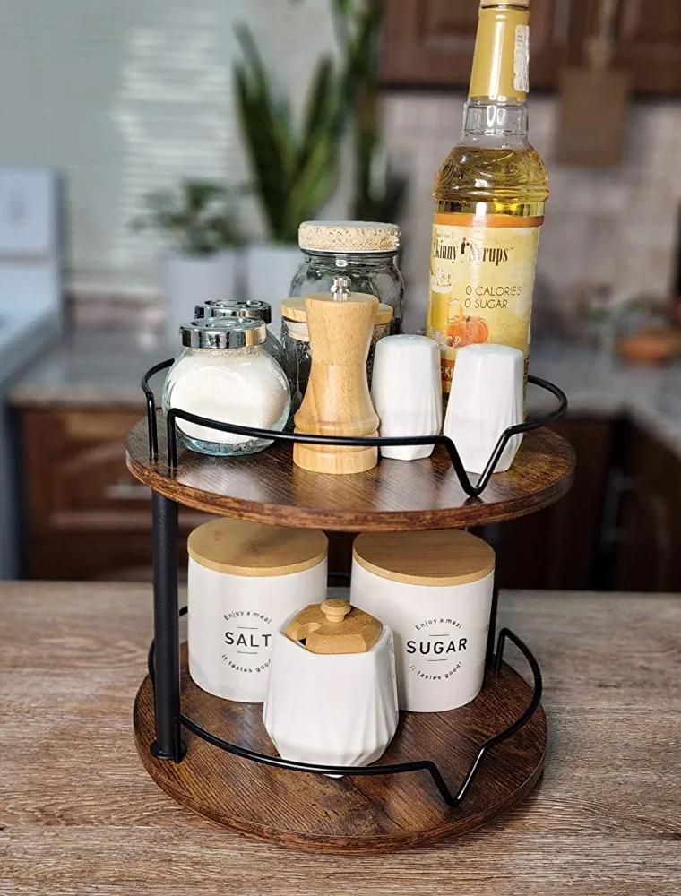 Say goodbye to cluttered spice cabinets and hello to a more organized and efficient kitchen with the 2 Shelf LAZY SUSAN Spice Rack Organizer.