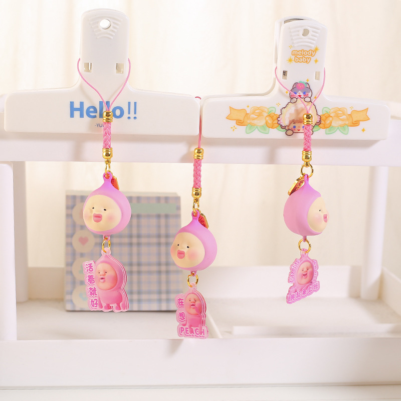 Fart peach water tone Fu Ling pendant mobile phone chain pendant small gift rope cartoon cute student bag pendant accessories