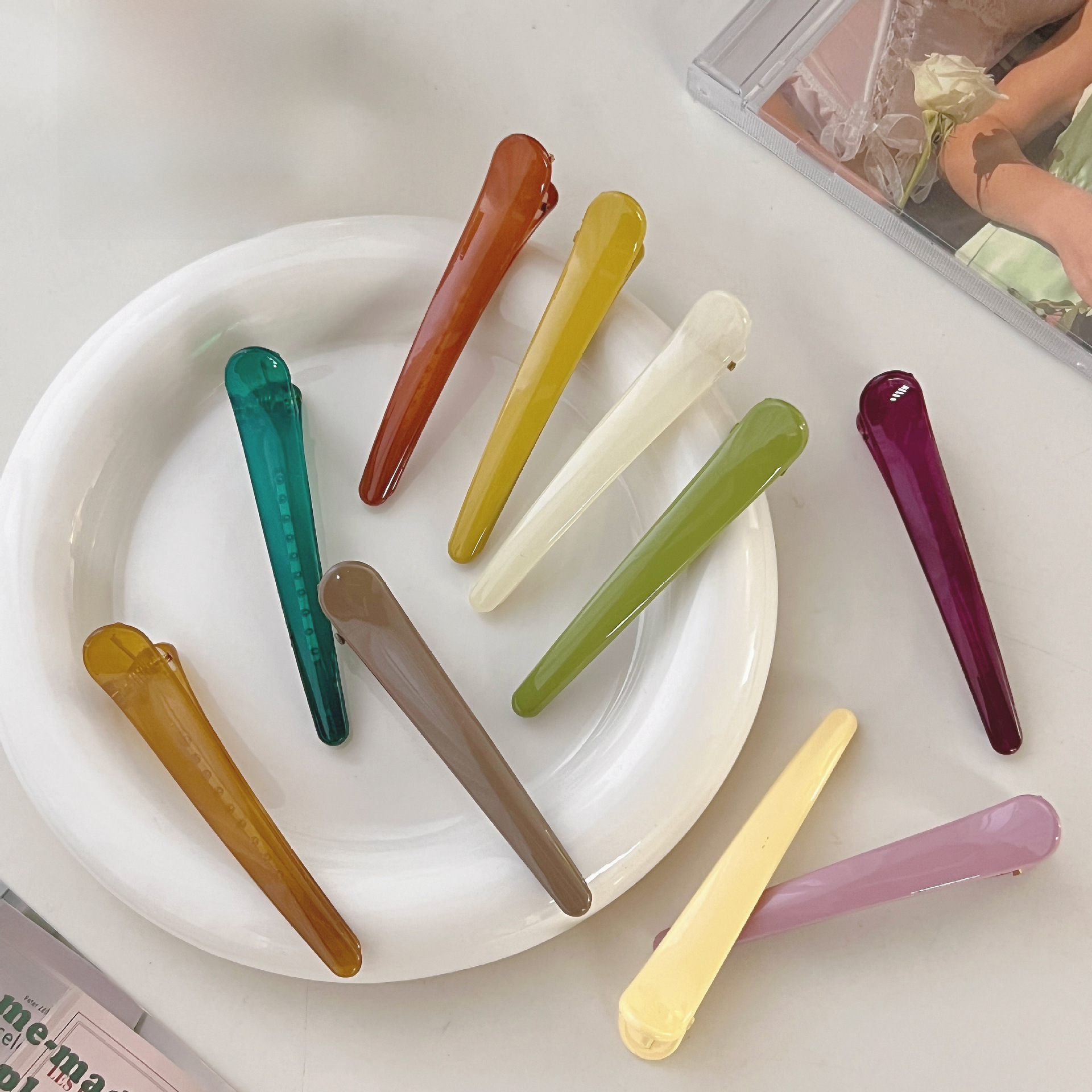 | nameOriginal | Fashion 8cm candy color duck bill clip color women's hair clip environmental protection hair simple side clip headdress hair accessories wholesale |