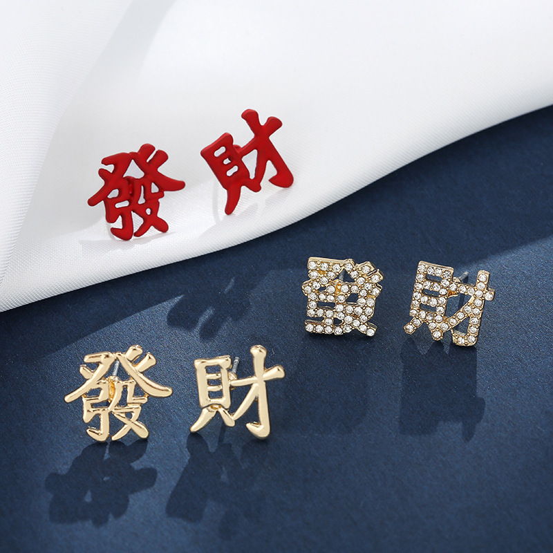 Fashion 925 Silver Needle Diamond Fortune Earrings Simple Chinese New Year Earrings Korean Light Luxury Niche Earrings Earrings B996