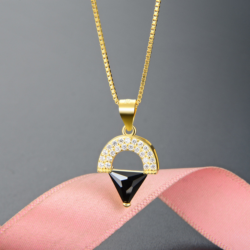 Fashion Accessories Clavicle Chain Japanese and Korean Style s925 Sterling Silver Zircon Pendant Small Fresh Triangle Crystal Oil Drop Necklace