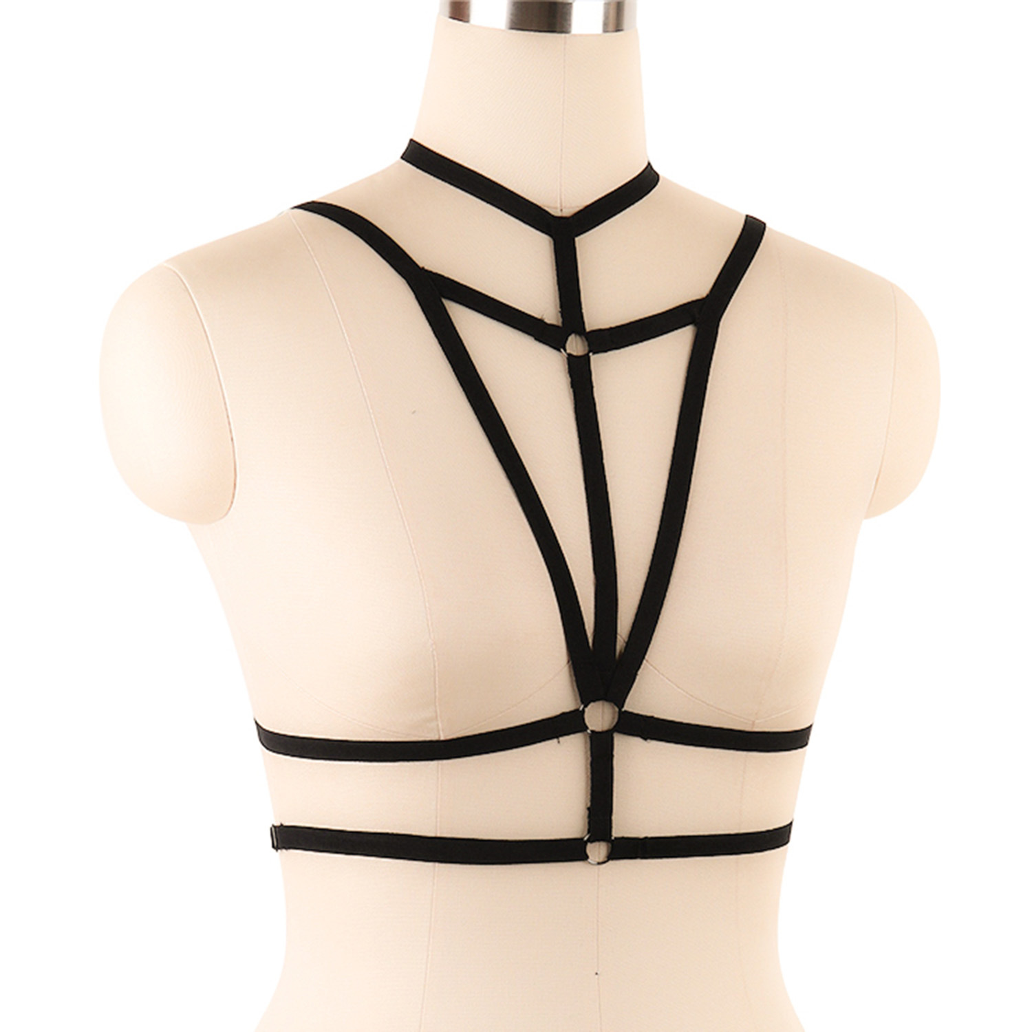 | nameOriginal | Fashion Black trend strap bra handmade elastic wire harness underwear bikini body clothing chain S0034 |