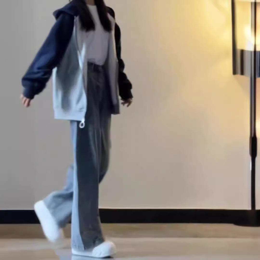 | nameOriginal | Fashion brand American hiphop contrast color Raglan hooded sweater women's spring and autumn loose Korean style butt-covering cardigan jacket |