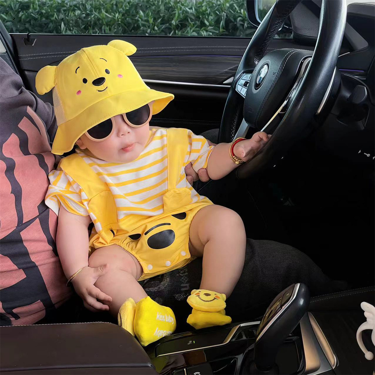 | nameOriginal | Fashion brand designer brand baby clothes 0-2 years old little yellow bear cotton triangle sheath suit striped romper |