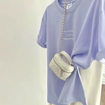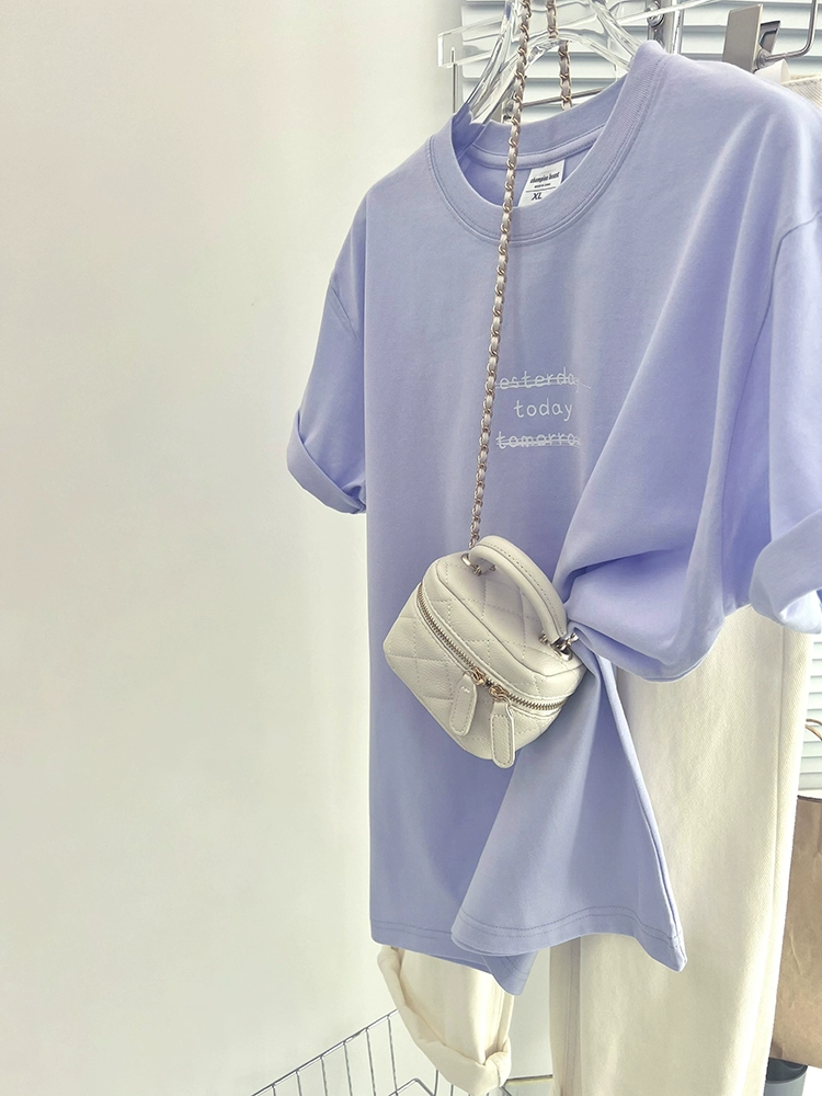 | nameOriginal | Fashion brand trendy short-sleeved T-shirt lavender daily summer ins female urban style youth popular round neck trend |