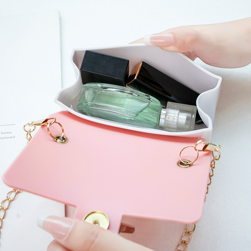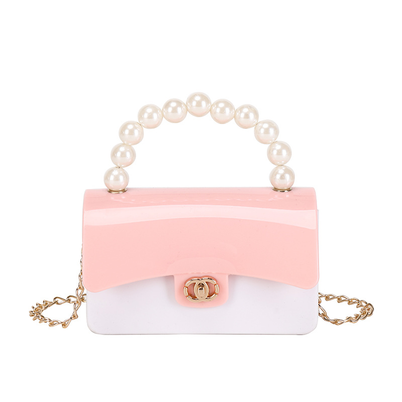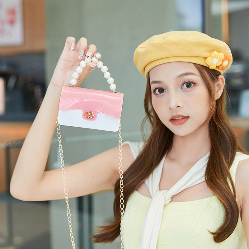 Fashion candy color jelly bag Pearl handbag shoulder messenger bag sweet lipstick bag chain lock small bag