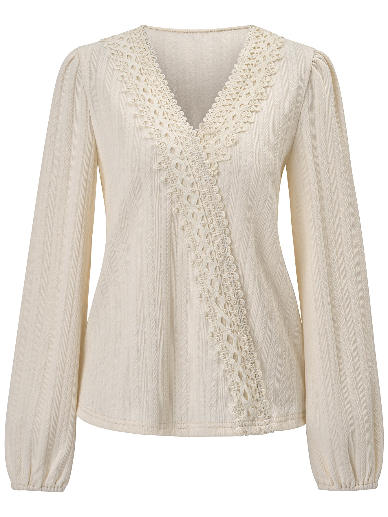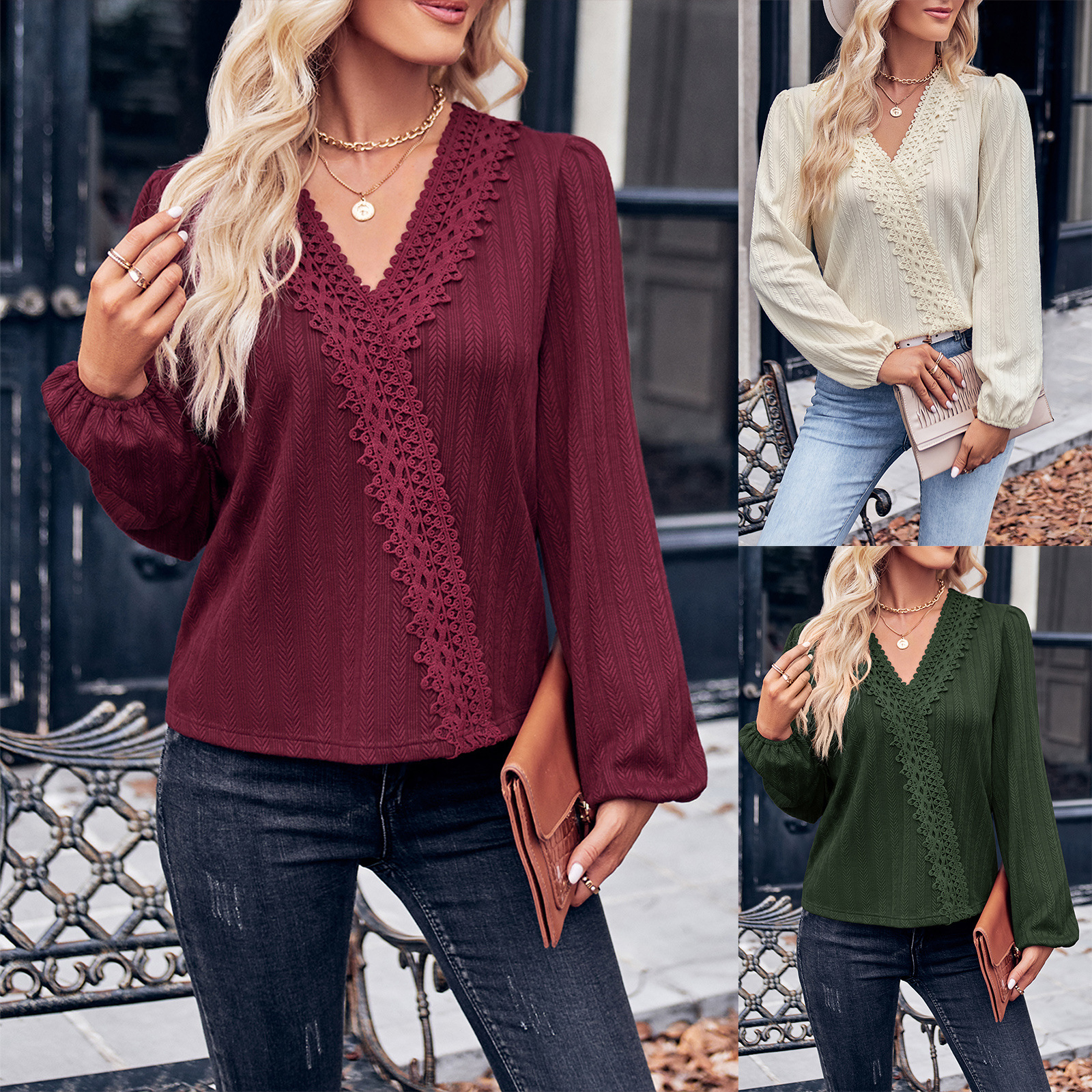Fashion Casual 2023 European and American Cross-border Women’s Clothing Amazon Autumn and Winter Trendy V-neck Lace Long Sleeve Top