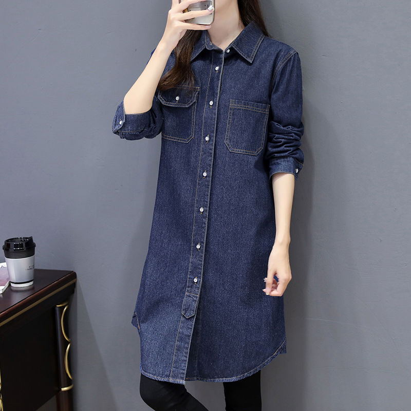 | nameOriginal | Fashion casual Denim shirt coat long plus size women's spring and autumn thin bf Korean long sleeve loose trench coat |