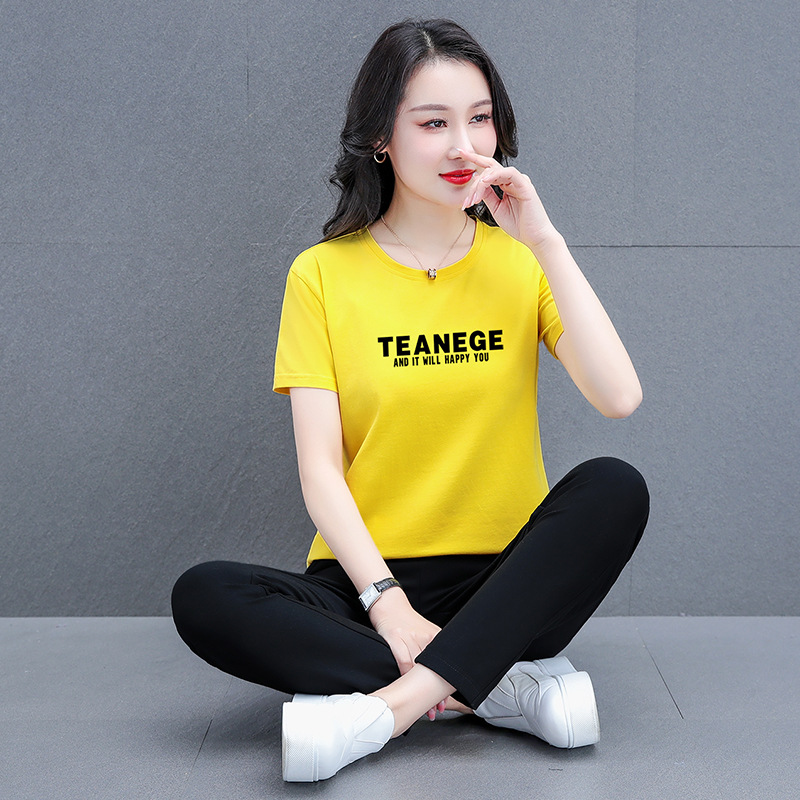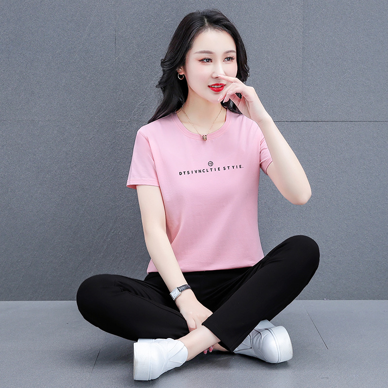 | nameOriginal | Fashion Casual Sports Suit Women's Summer 2024 New Cotton Age-Reducing Slimming Loose Short-Sleeved Trousers Two-Piece Set |