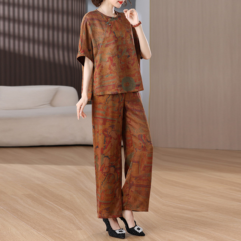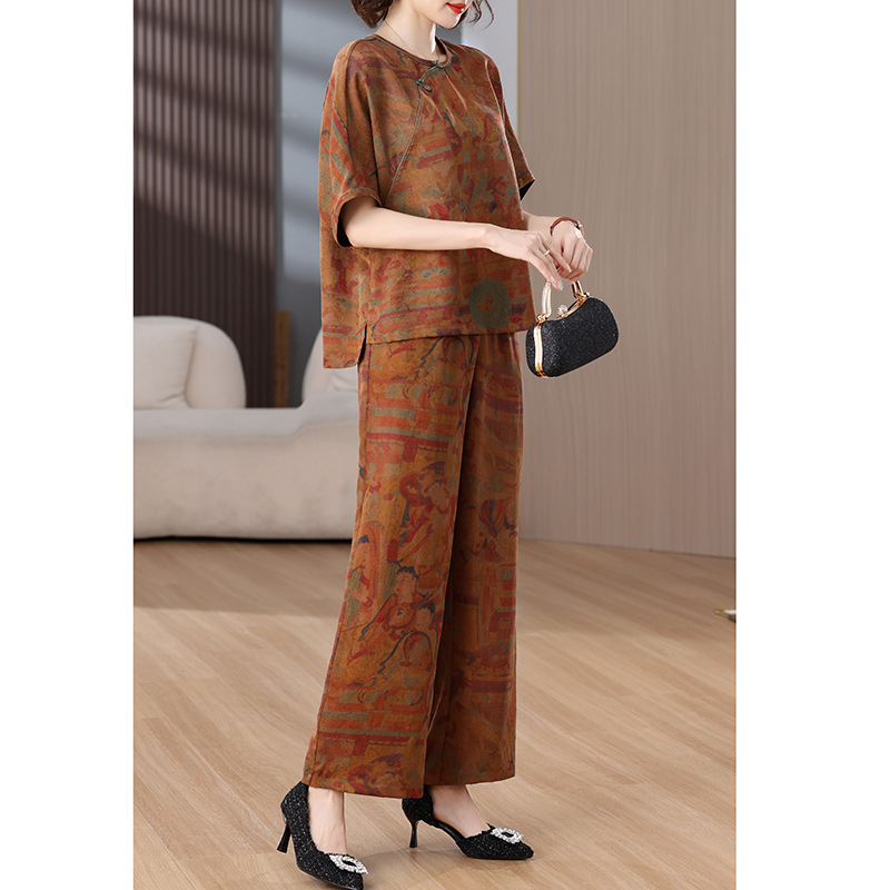 | nameOriginal | Fashion Casual suit Women's 2024 Summer New Round Neck Elegant Chubby Mother Loose Top Wide Leg Pants Two-piece Set |