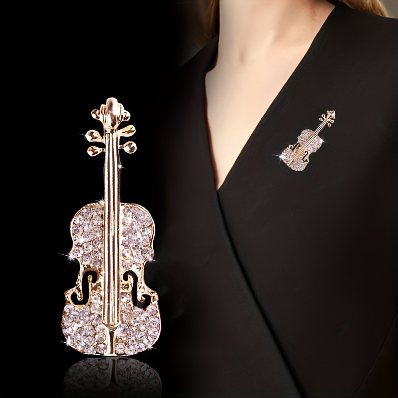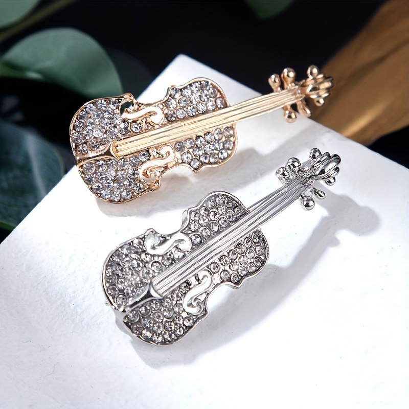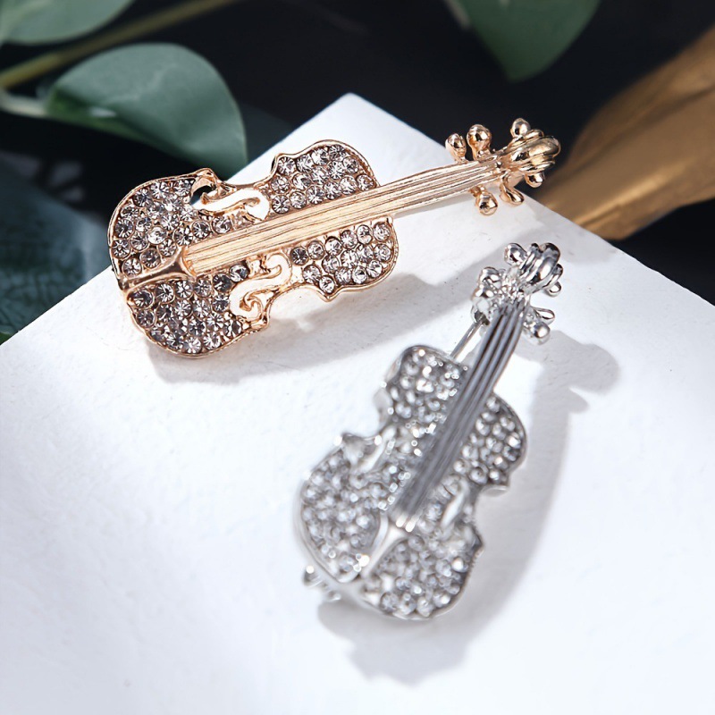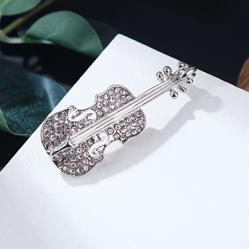 Fashion Creative Personality Flash Full Diamond Rhinestone All-match Guitar Violin Brooch Men's and Women's Universal Jewelry Accessories