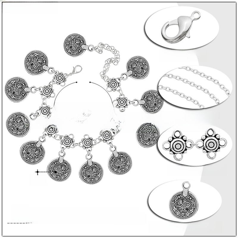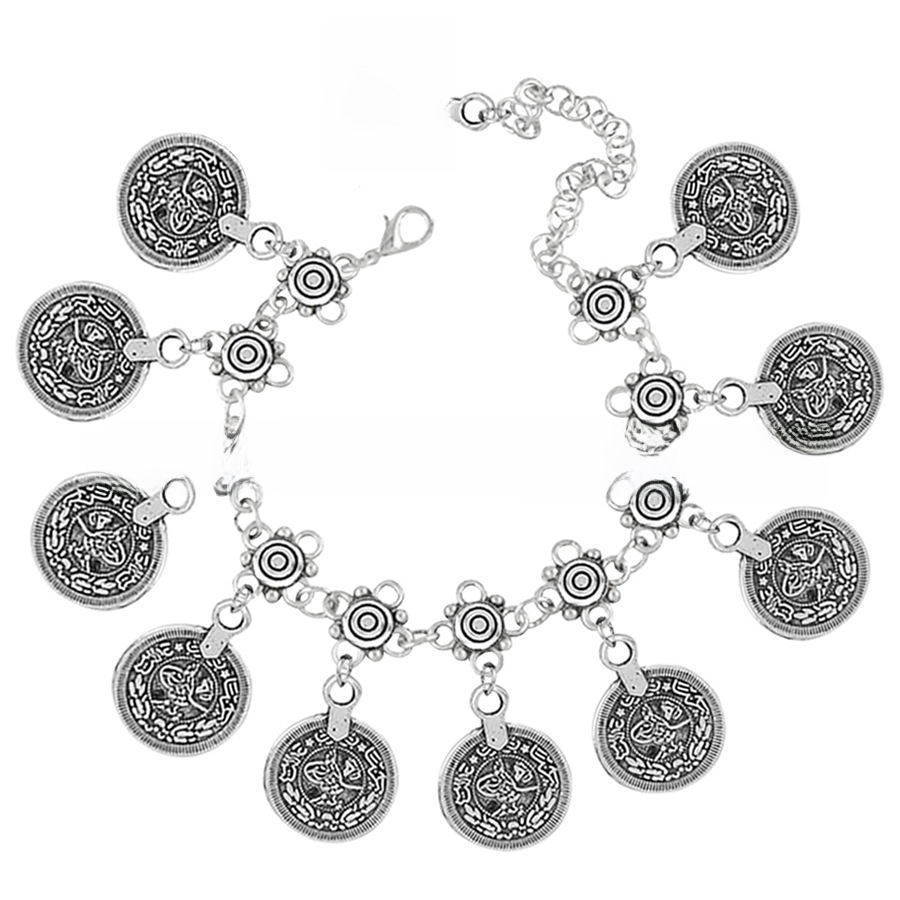 | nameOriginal | Fashion cross-border bohemian Retro ethnic style alloy electroplated ancient silver carved coin anklet anklet bracelet |