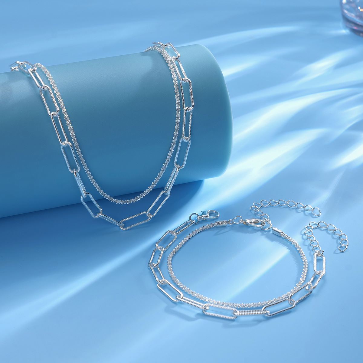 | nameOriginal | Fashion cross-border new necklace personalized elegant all-match zircon double-layer stacked clavicle bracelet necklace suit jewelry |