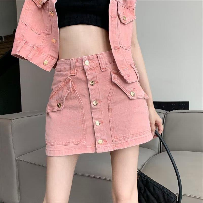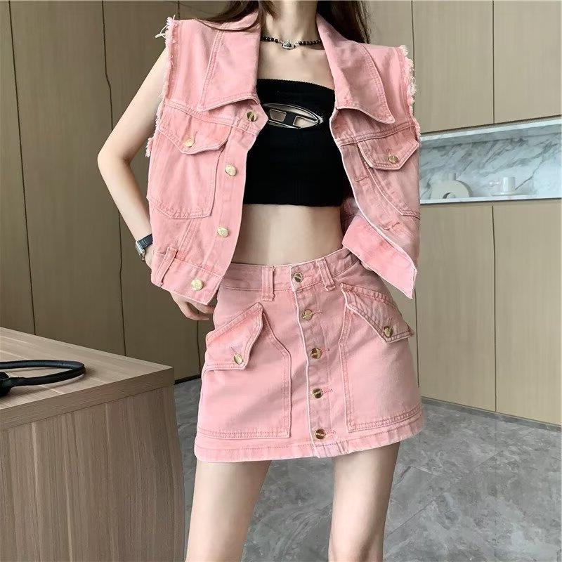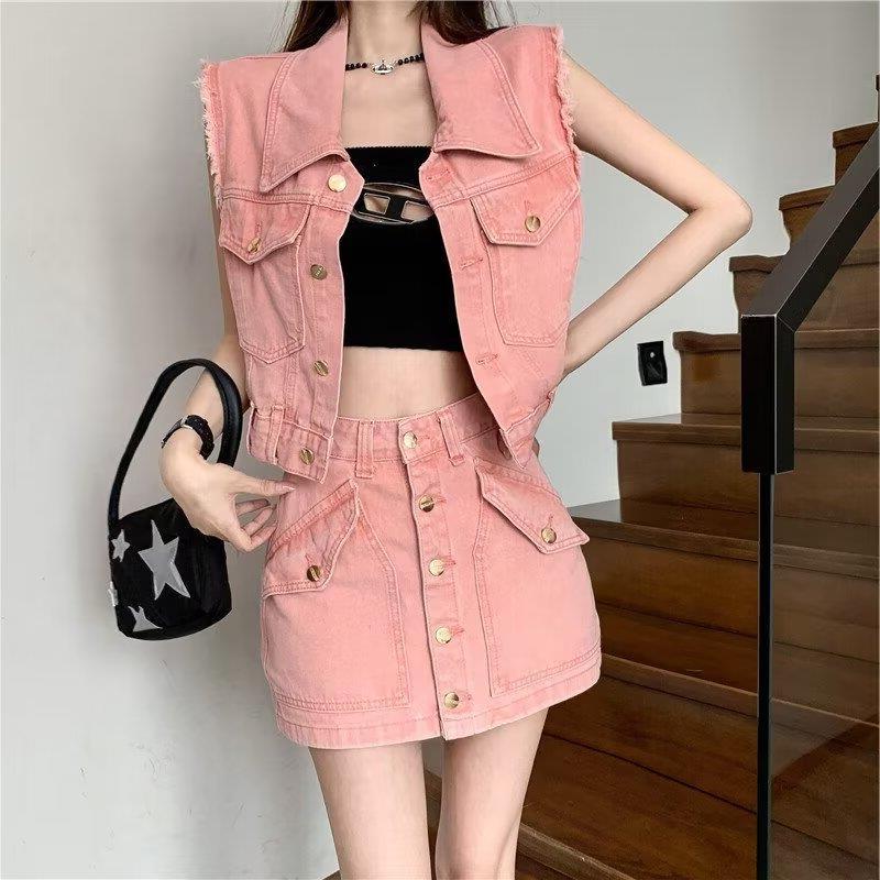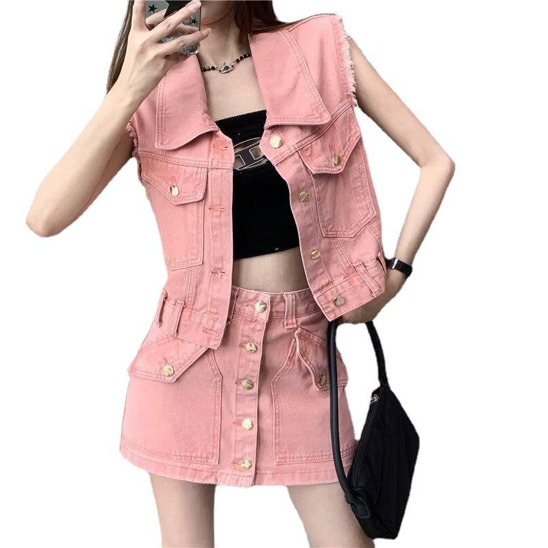 | nameOriginal | Fashion Denim suit Summer New Plaid Short-sleeved Skirt Two-piece Set for Small Women All-match Trendy Top |
