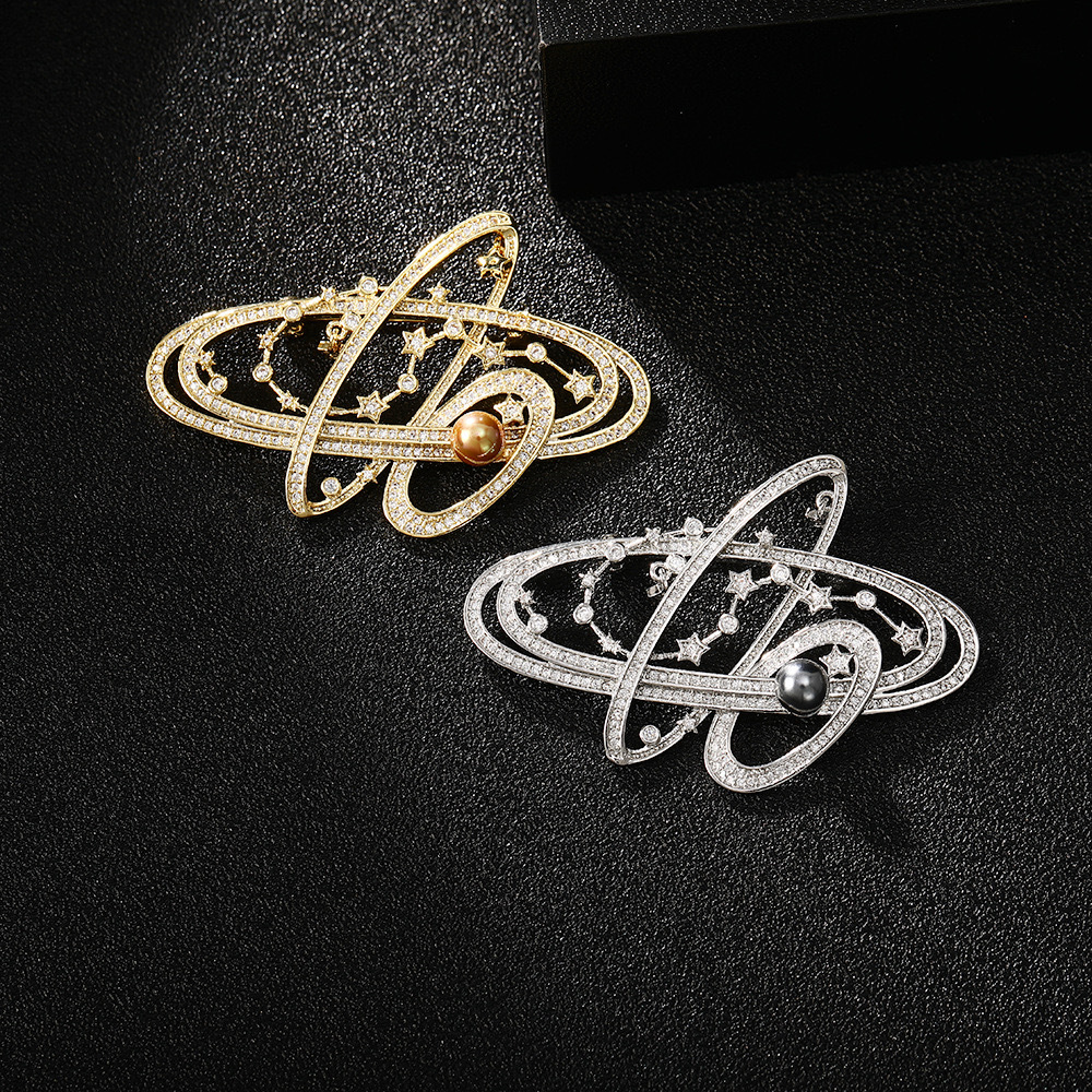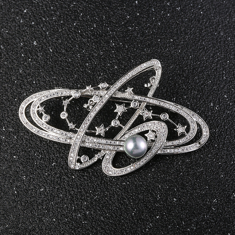 Fashion Diamond silver Saturn Brooch High-end Women's Corsage Design Sense Niche Autumn and Winter Coat High-end Sweater Pin