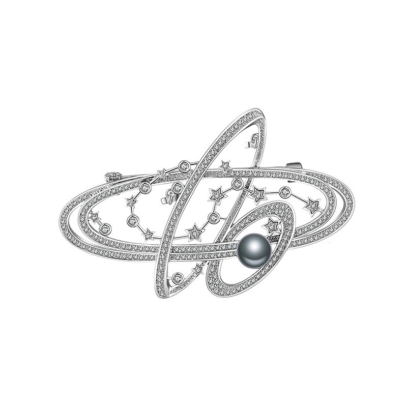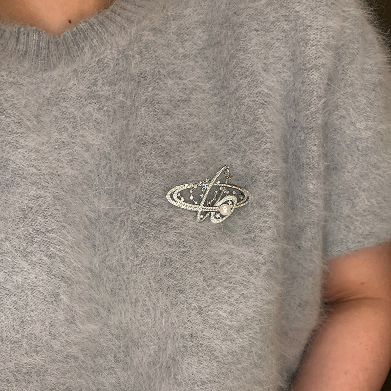 Fashion Diamond silver Saturn Brooch High-end Women’s Corsage Design Sense Niche Autumn and Winter Coat High-end Sweater Pin