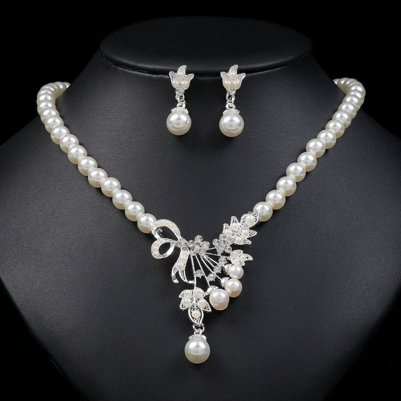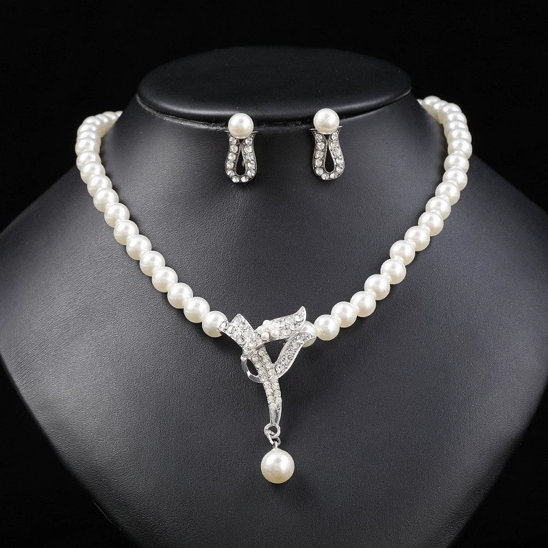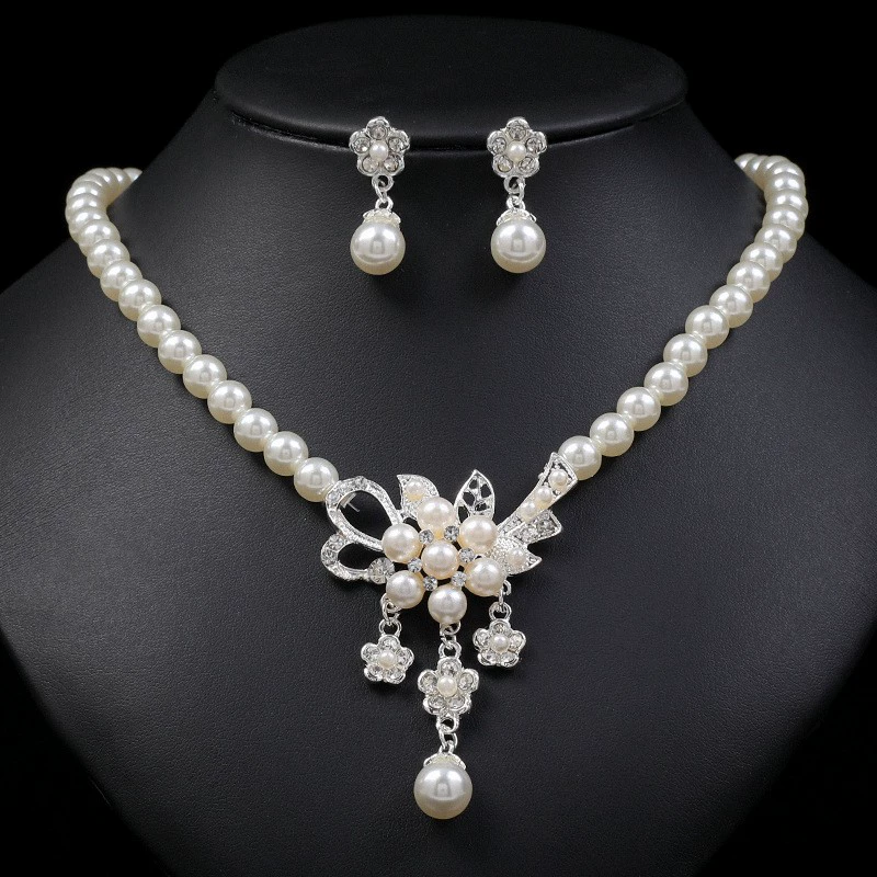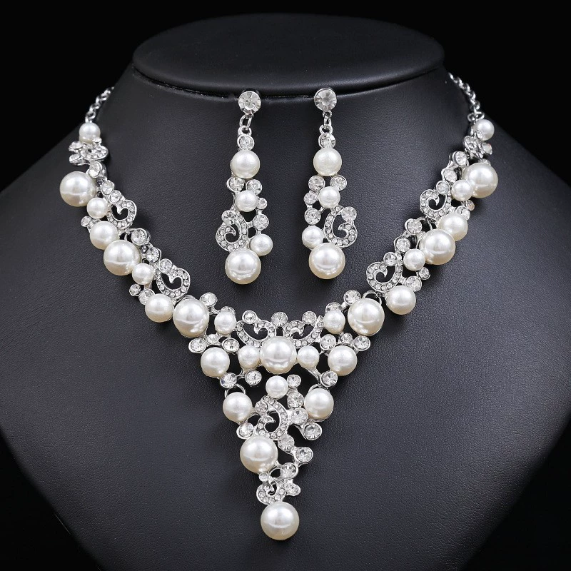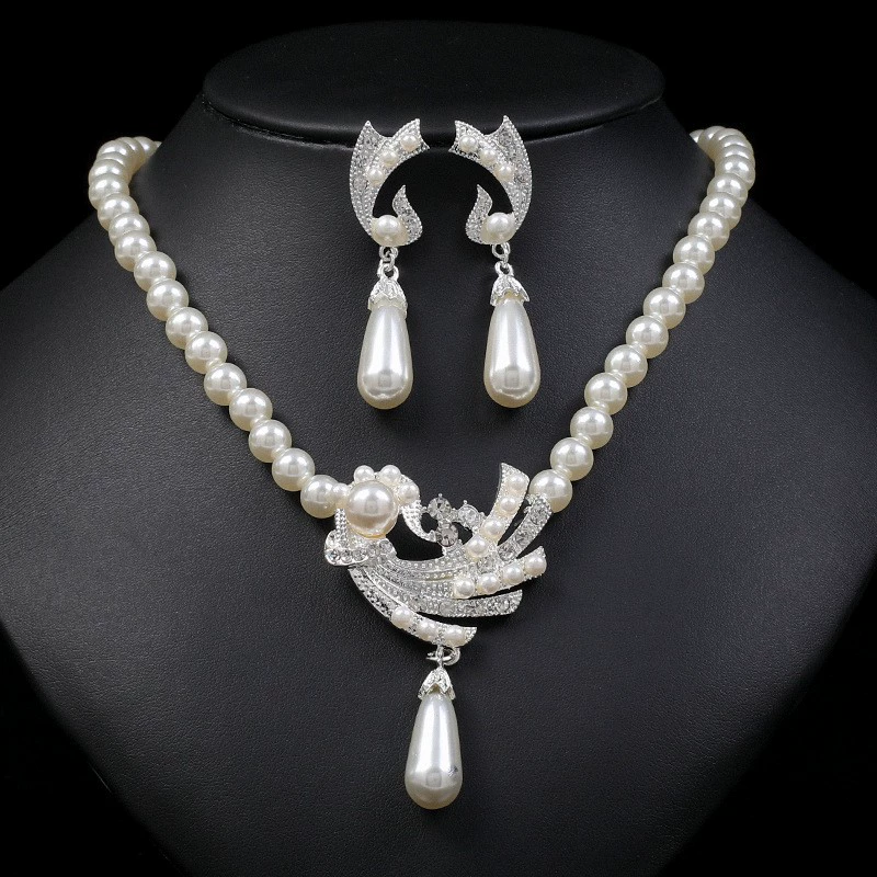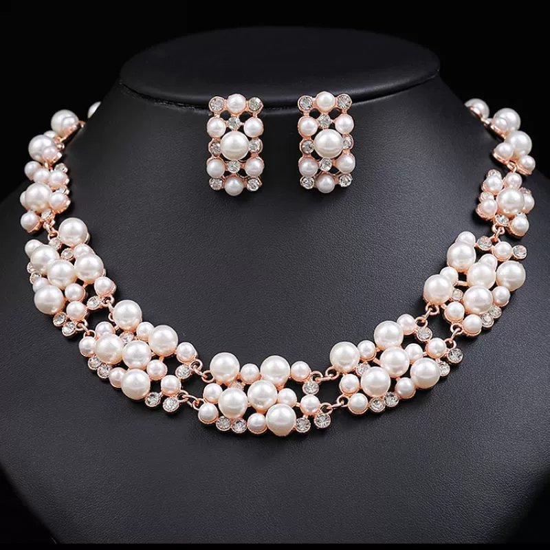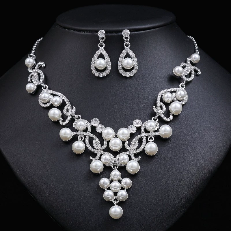 Fashion Earrings Women Alloy Bridal Dress Pearl Necklace