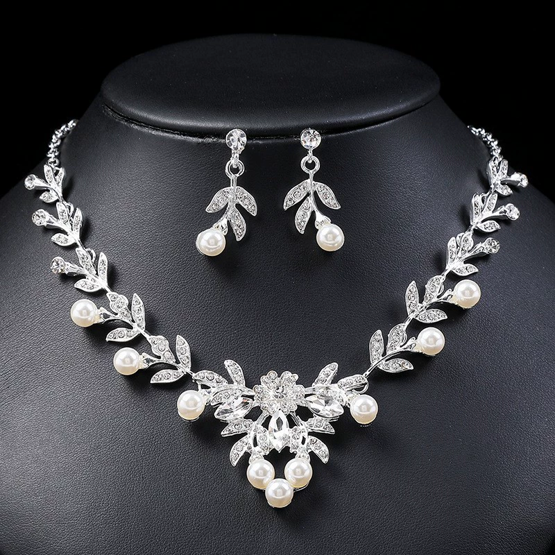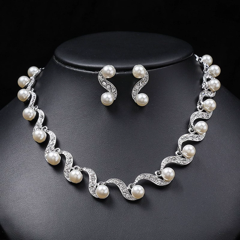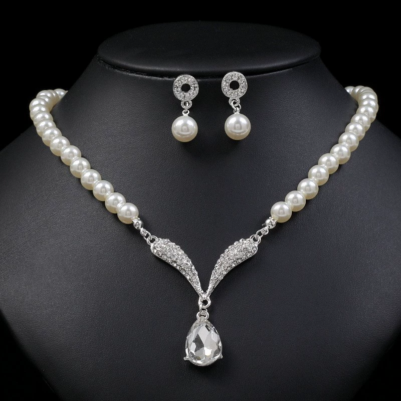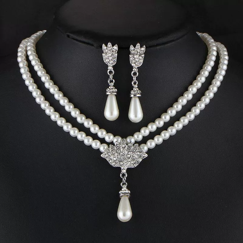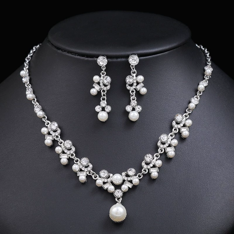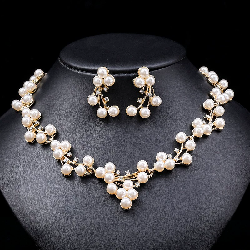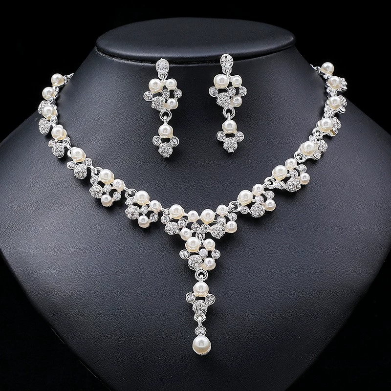 Fashion Earrings Women Alloy Bridal Dress Pearl Necklace