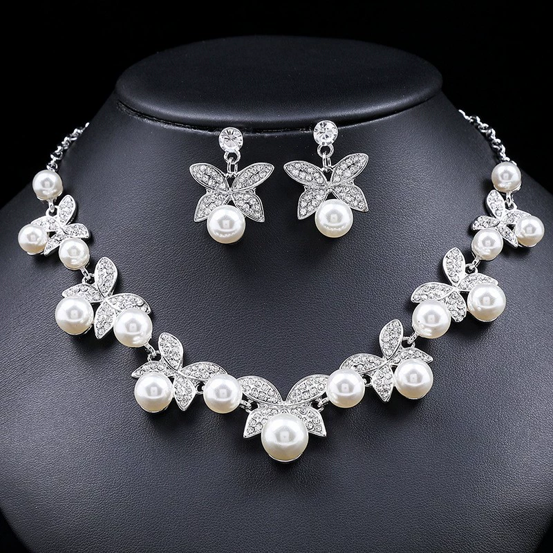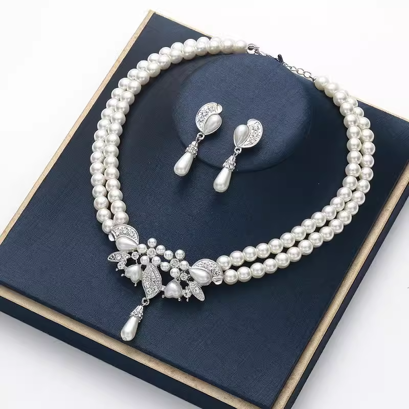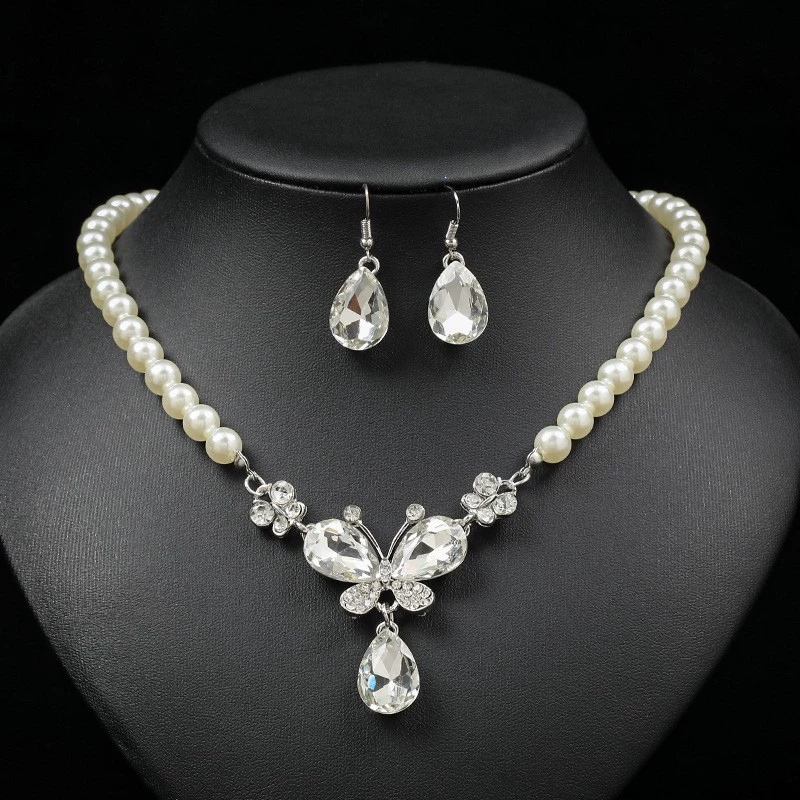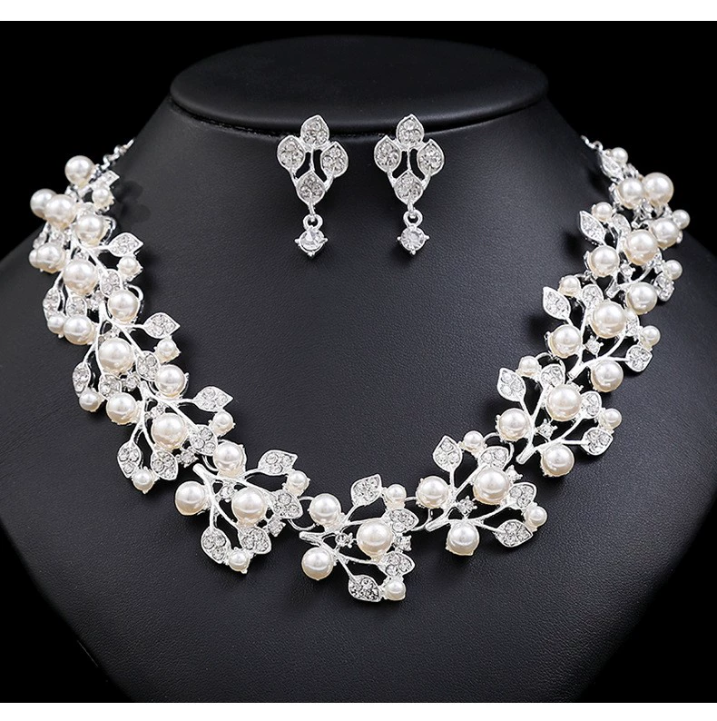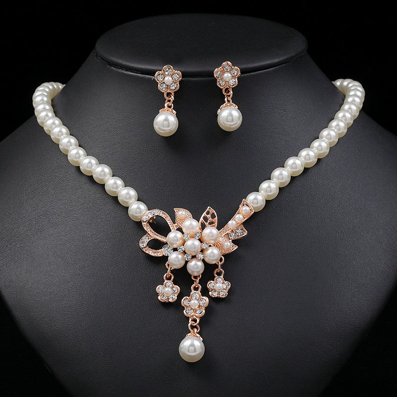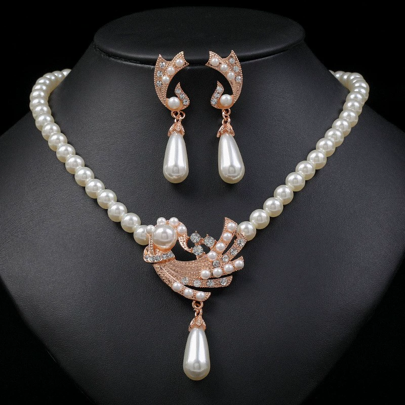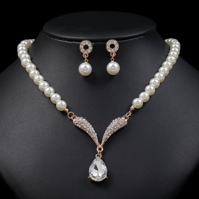 Fashion Earrings Women Alloy Bridal Dress Pearl Necklace