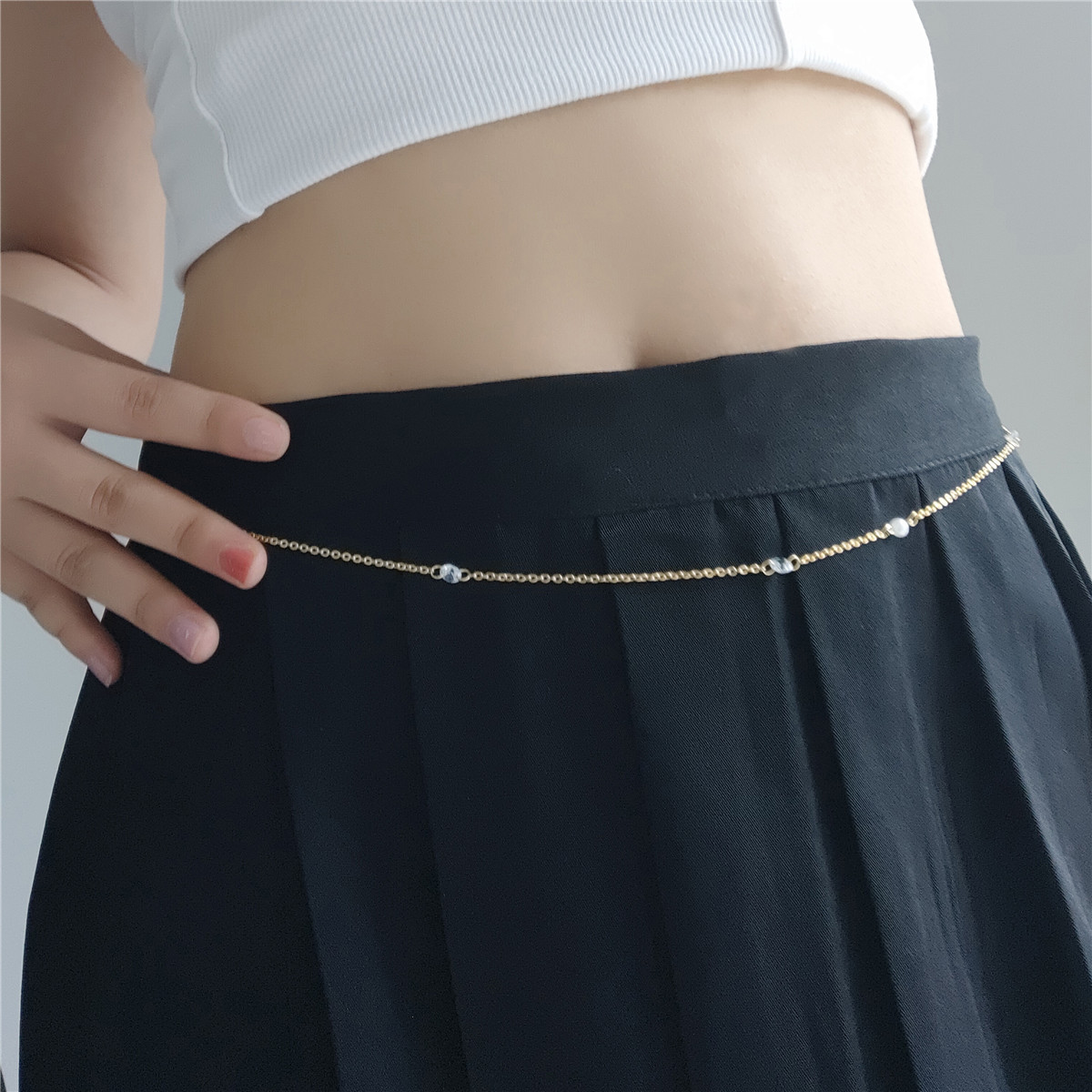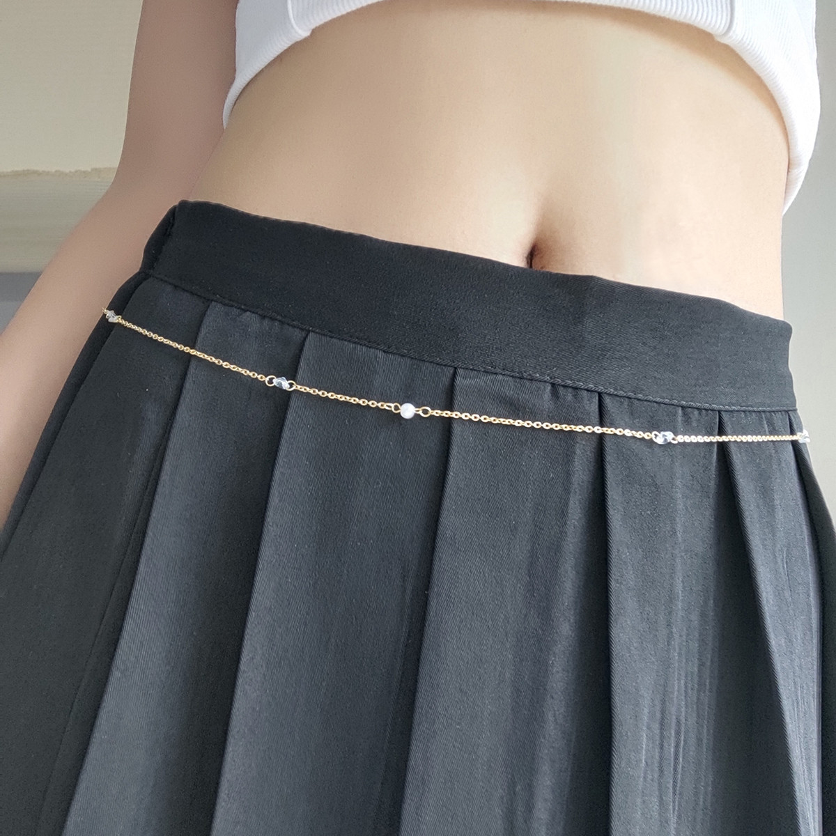 | nameOriginal | Fashion exquisite wild stainless steel Crystal pearl pendant charm temperament sexy waist chain jewelry |