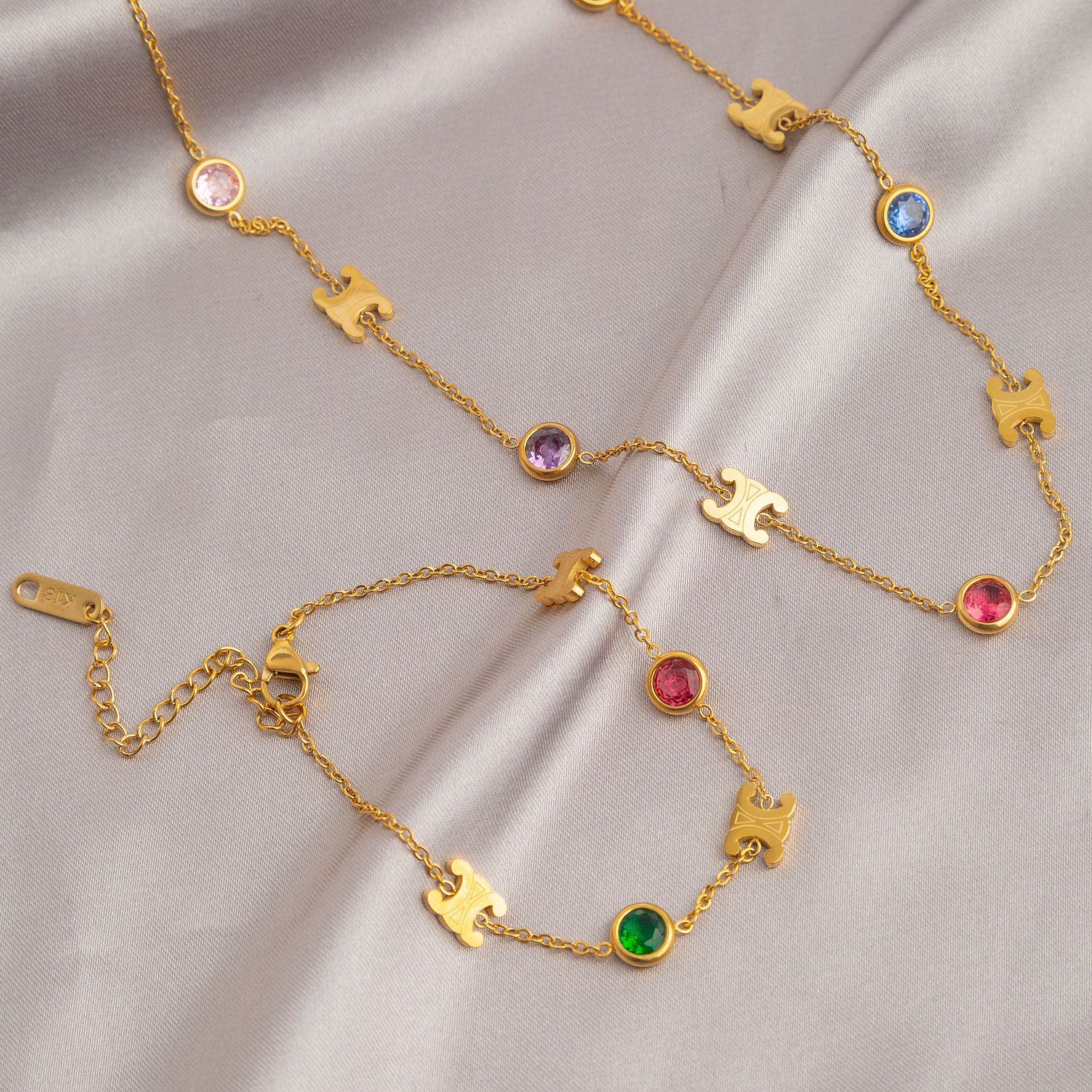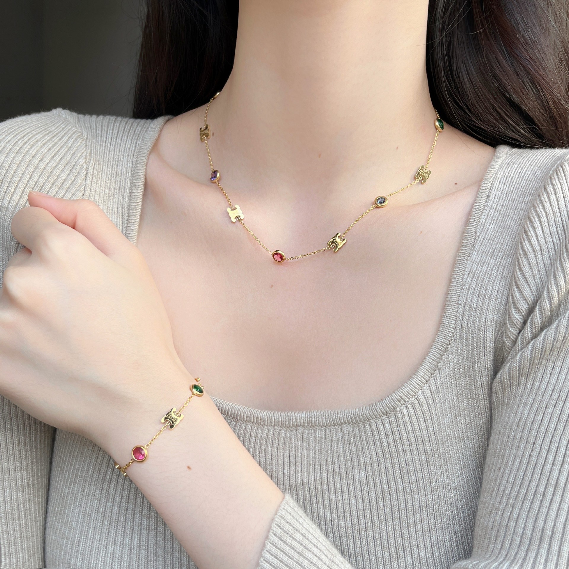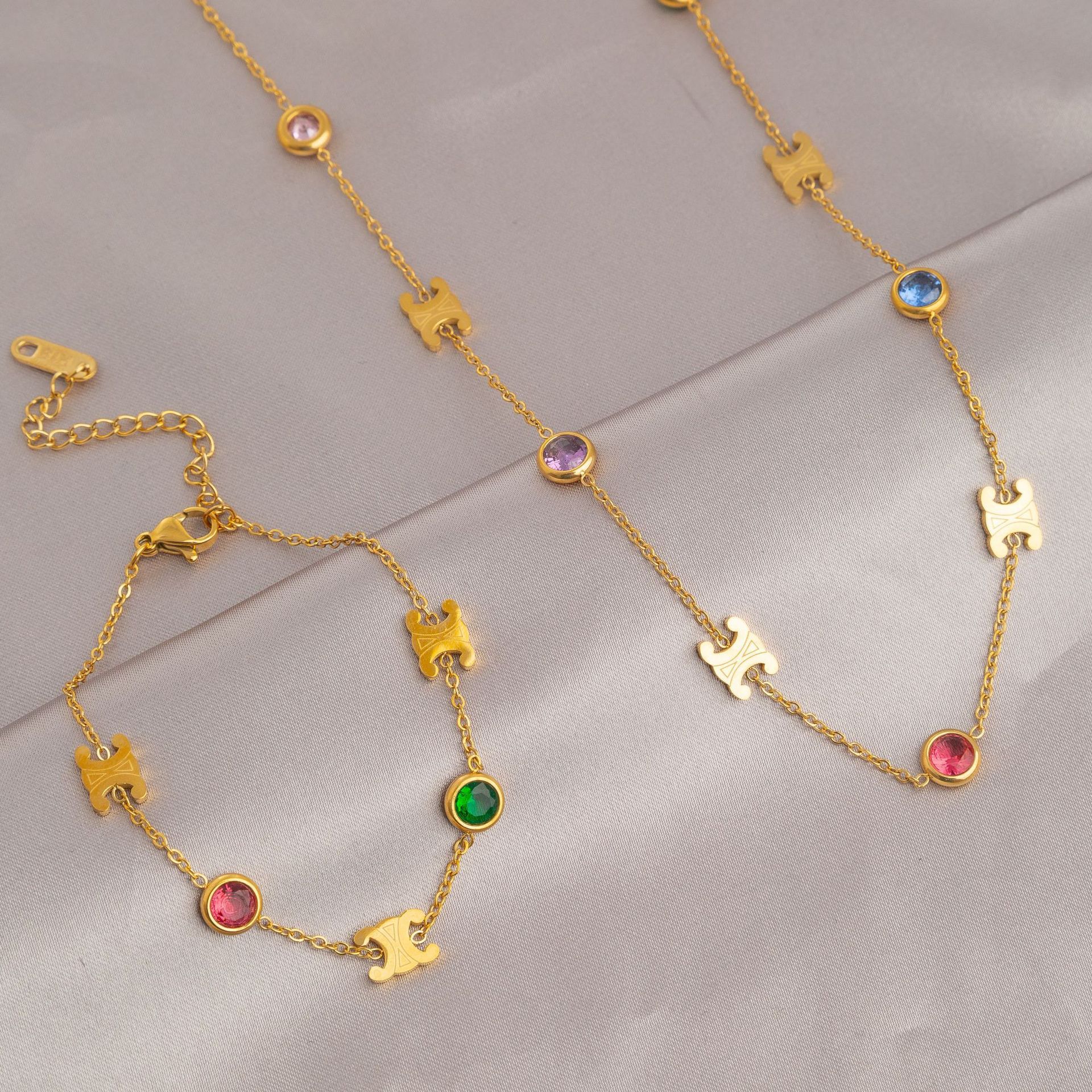 | nameOriginal | Fashion French Retro Color Stone Mosaic Letter Necklace Niche Design High-end New Clavicle Chain Bracelet |