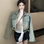 Fashion heavy industry diamond retro short denim jacket