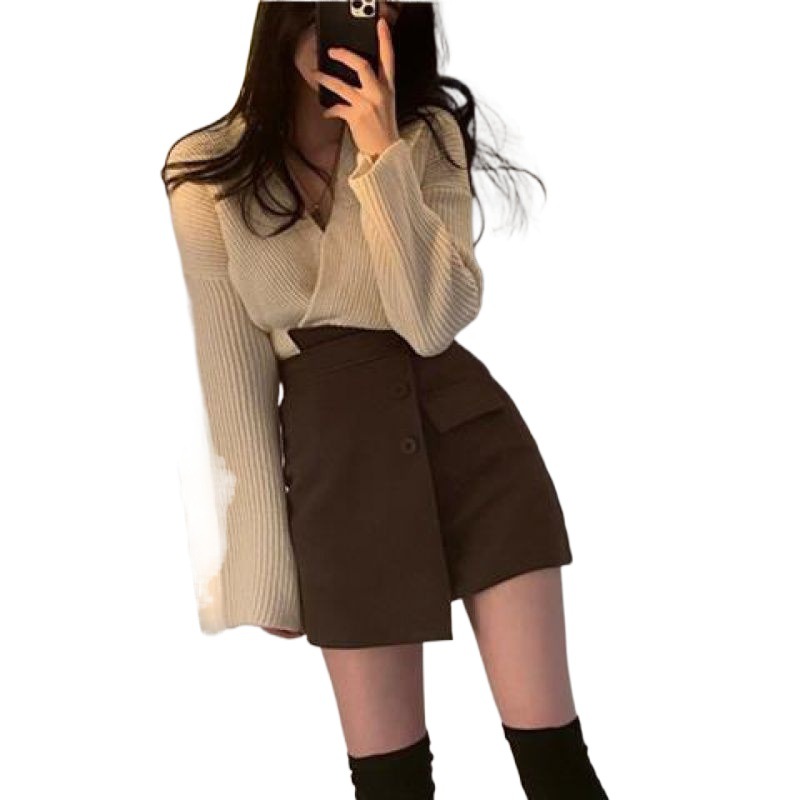 Fashion Hong Kong Style suit Women’s Retro High Waist Irregular Pants Sweater Two-piece Set Small 2024 New