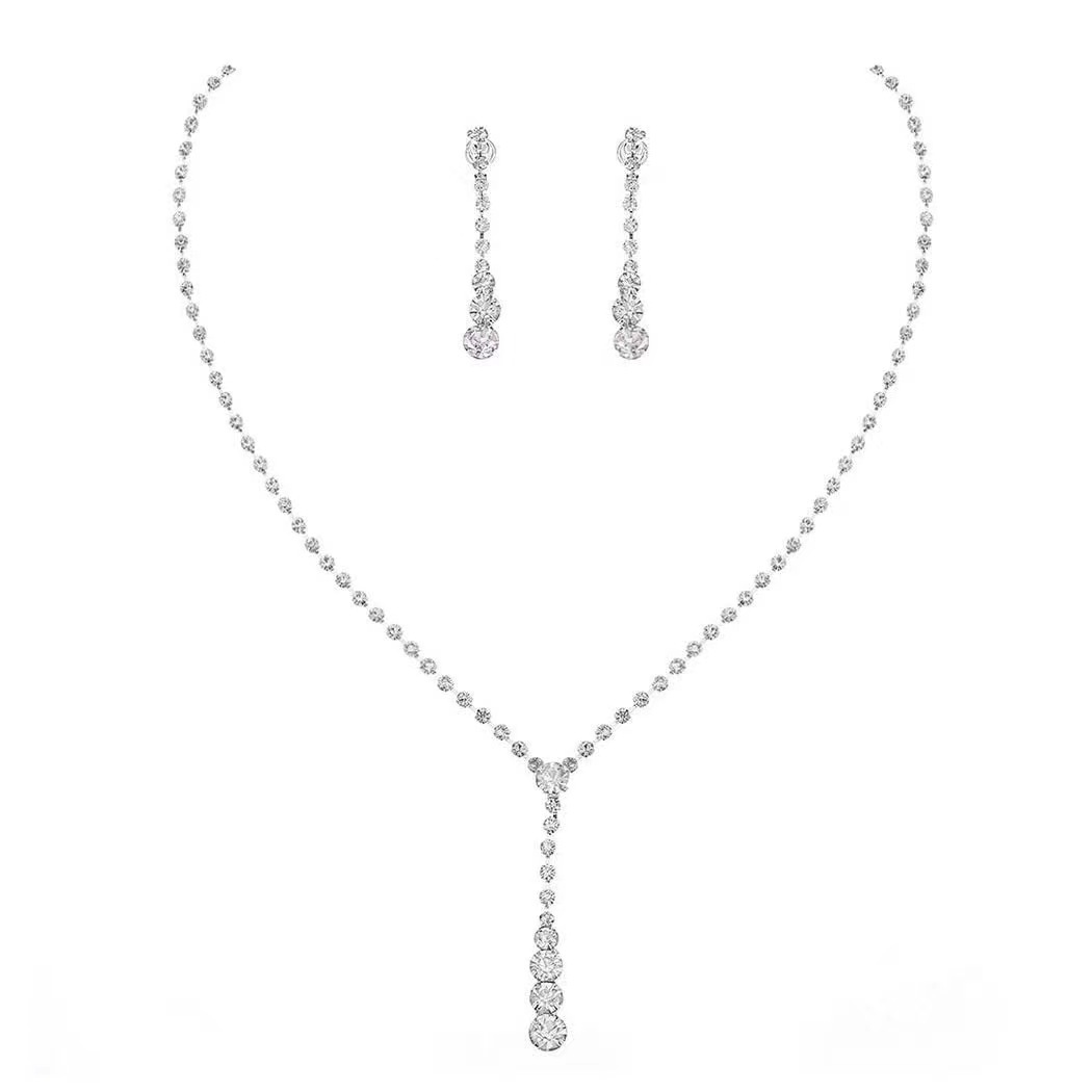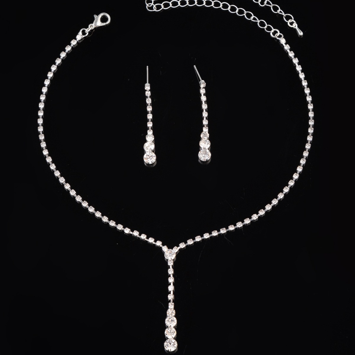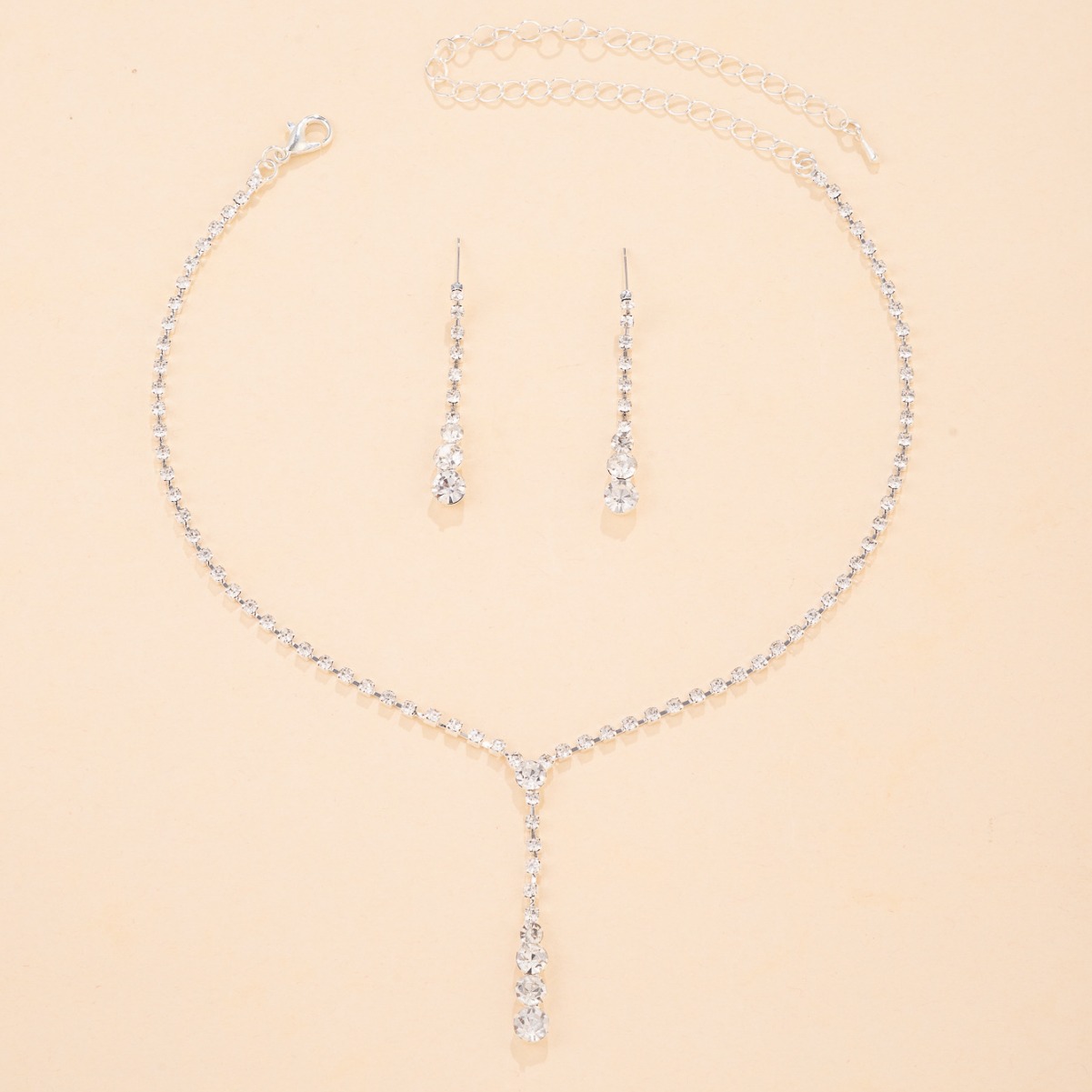 | nameOriginal | Fashion Joker Simple Rhinestone Clavicle Chain Necklace Earrings Jewelry suit Women's Wedding Dress Accessories Set Chain |