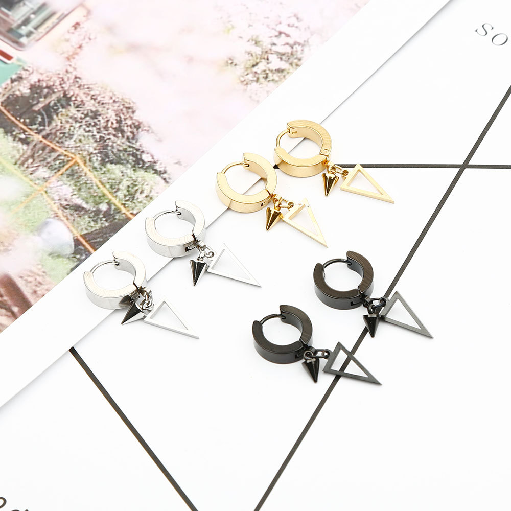 Fashion Korean-style Triangle Tapered Titanium Steel Women’s Earrings Earrings wish Amazon Cross-border Personality Suit Accessories