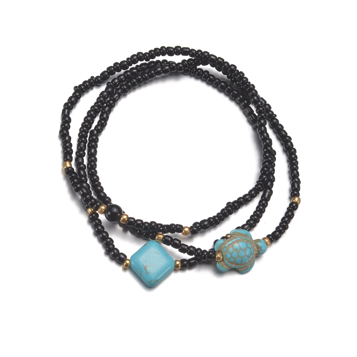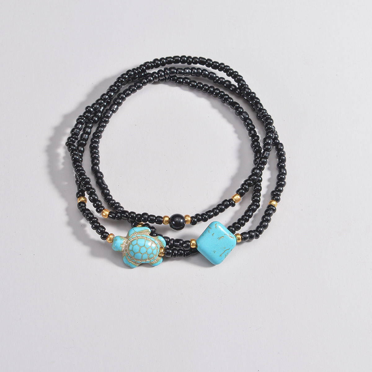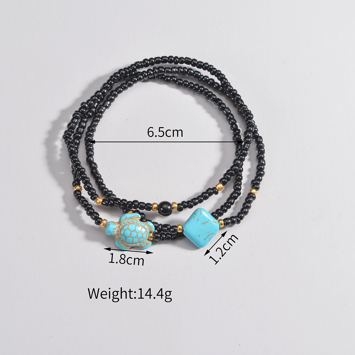 Fashion marine wind turtle turtle geometric quadrilateral rice beads elastic anklet 3 piece set for beach vacation