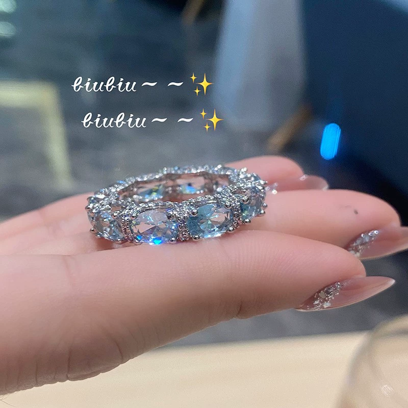 | nameOriginal | Fashion micro-studded diamond aquamarine row ring for women ins light luxury retro style galaxy princess lace ring for women |