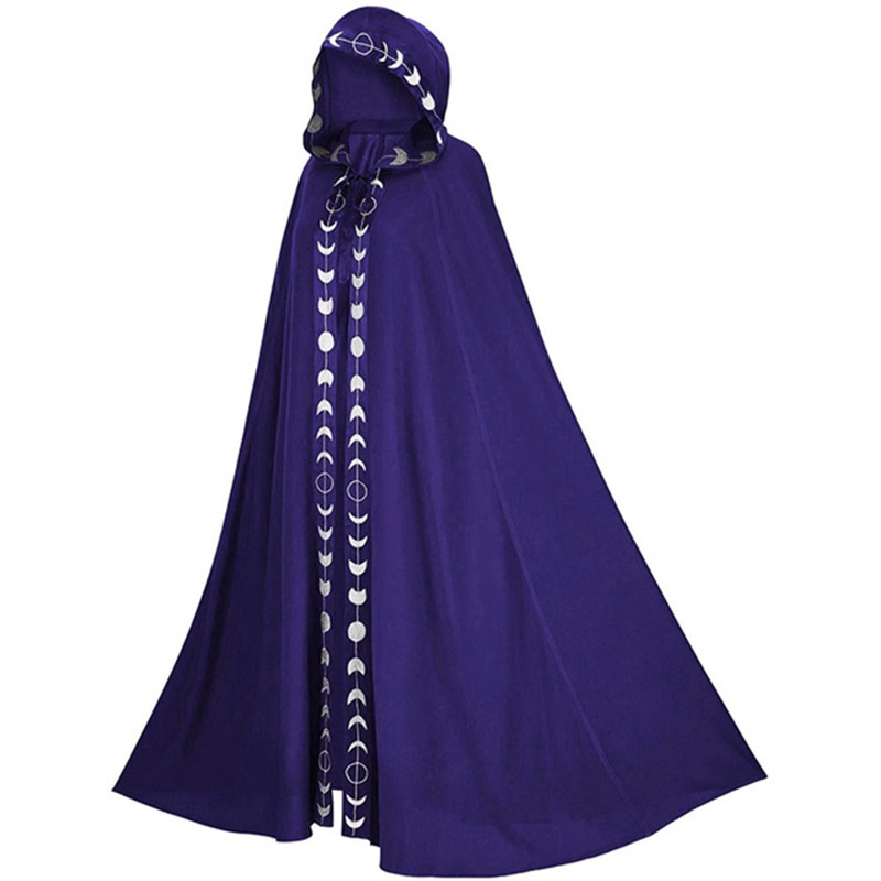 Fashion Moon Print Hooded Cape Medieval Renaissance Unisex5 Color Cloak Halloween Costume