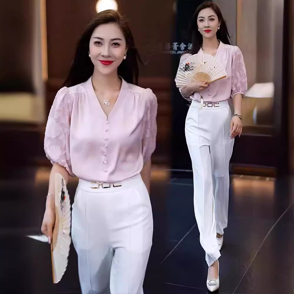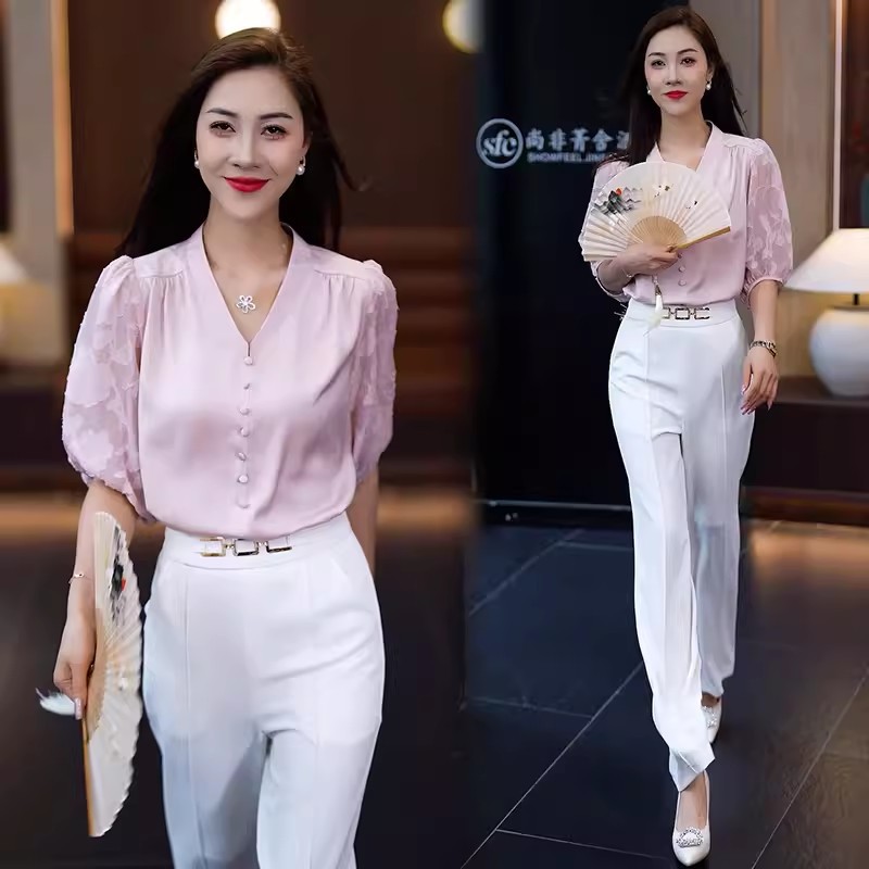 | nameOriginal | Fashion New Chinese Chiffon Shirt Women's Summer New Design Sense Foreign Elegant Age-reducing V-neck Shirt All-match Top |