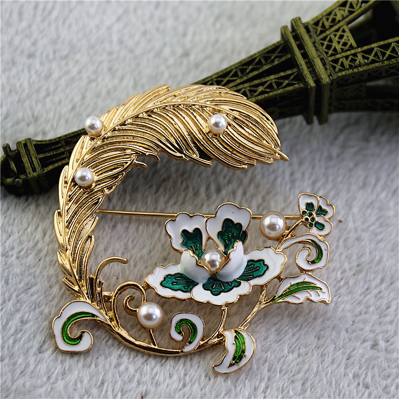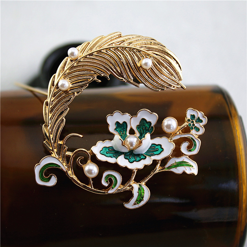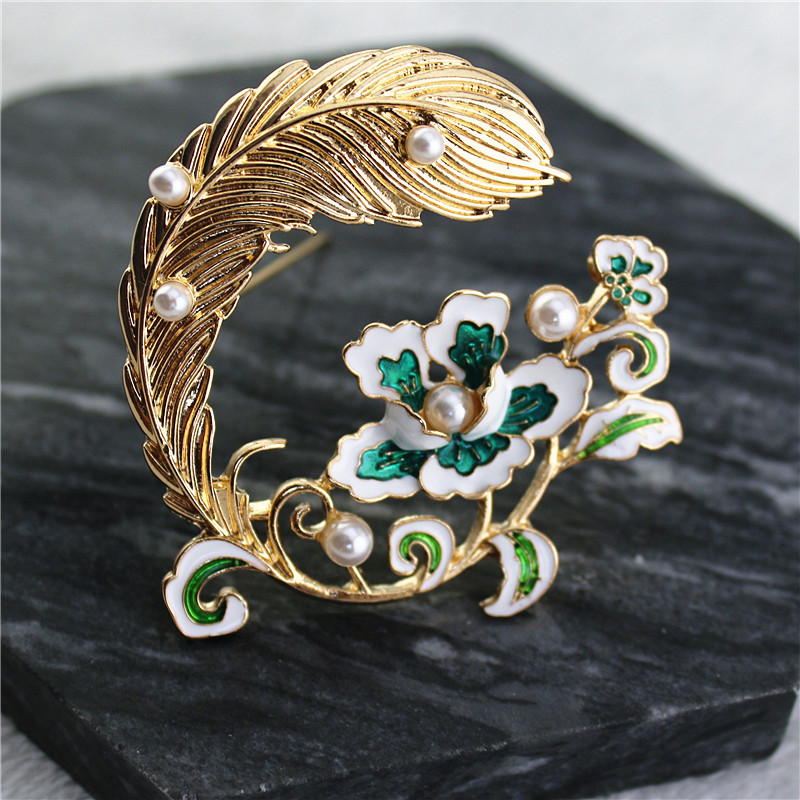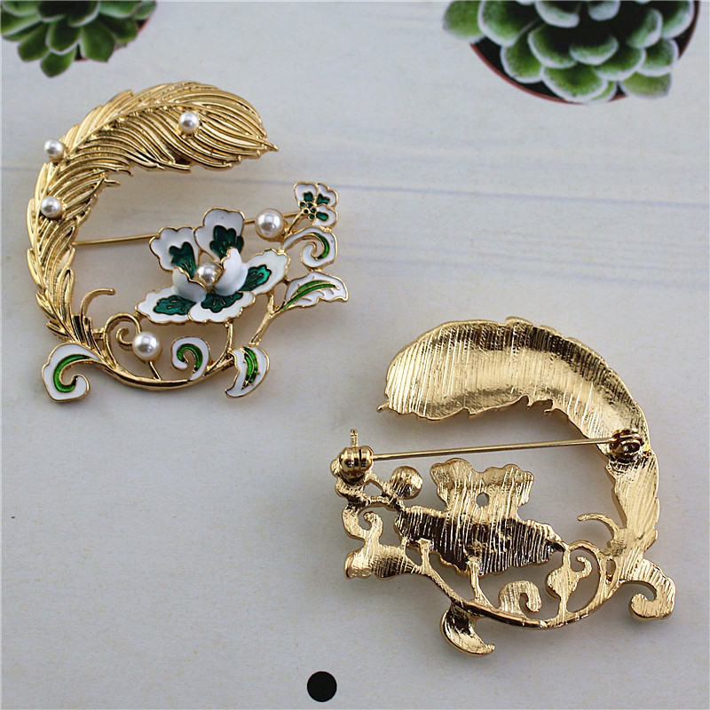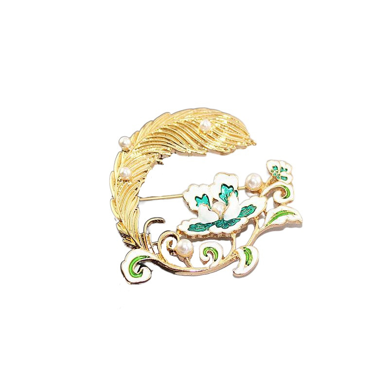 Fashion New Elegant Peacock Feather Inlaid Pearl Brooch High Temperament Simple All-match Chinese Style Peony Brooch
