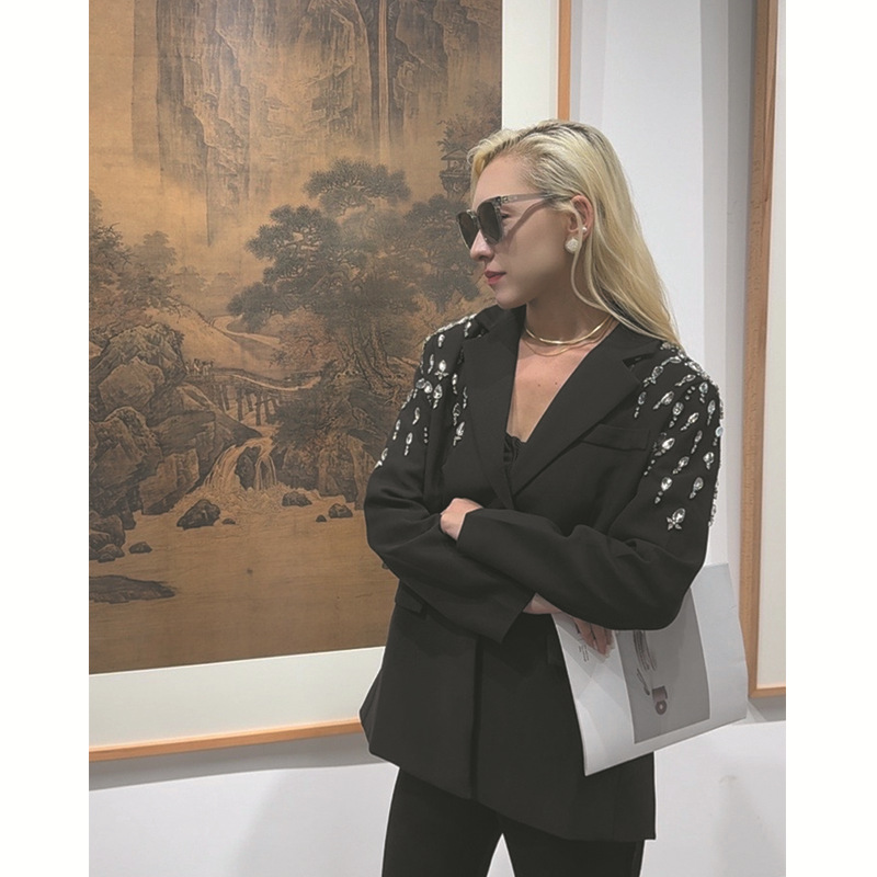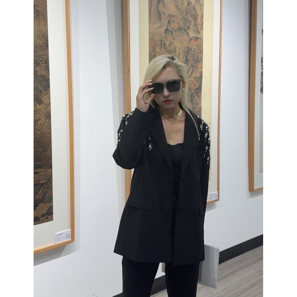| nameOriginal | Fashion new handmade gorgeous heavy industry lamp beads inlaid brick black suit jacket 2024 spring and autumn new |