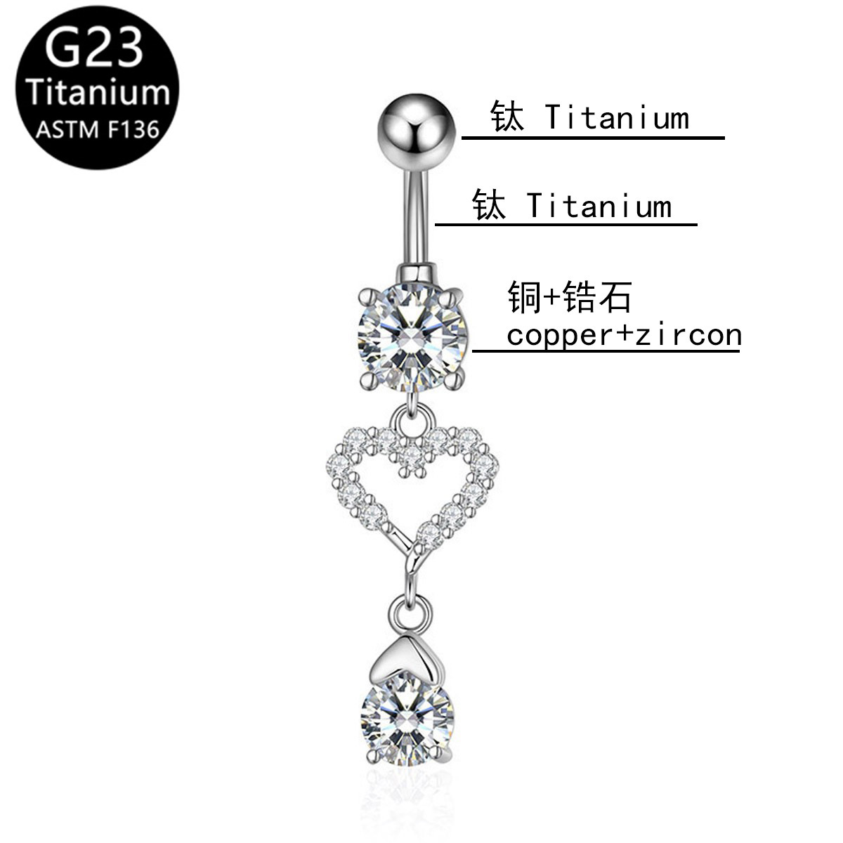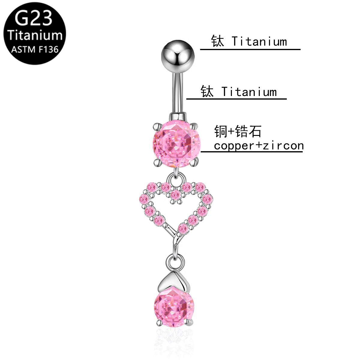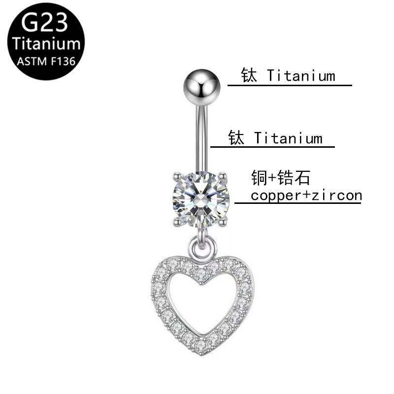Fashion New Jewelry Peach Heart Micro-inlaid Navel Ring G23 Titanium Rod Hot Selling Zircon Pendant Navel Nail Piercing Navel Buckle