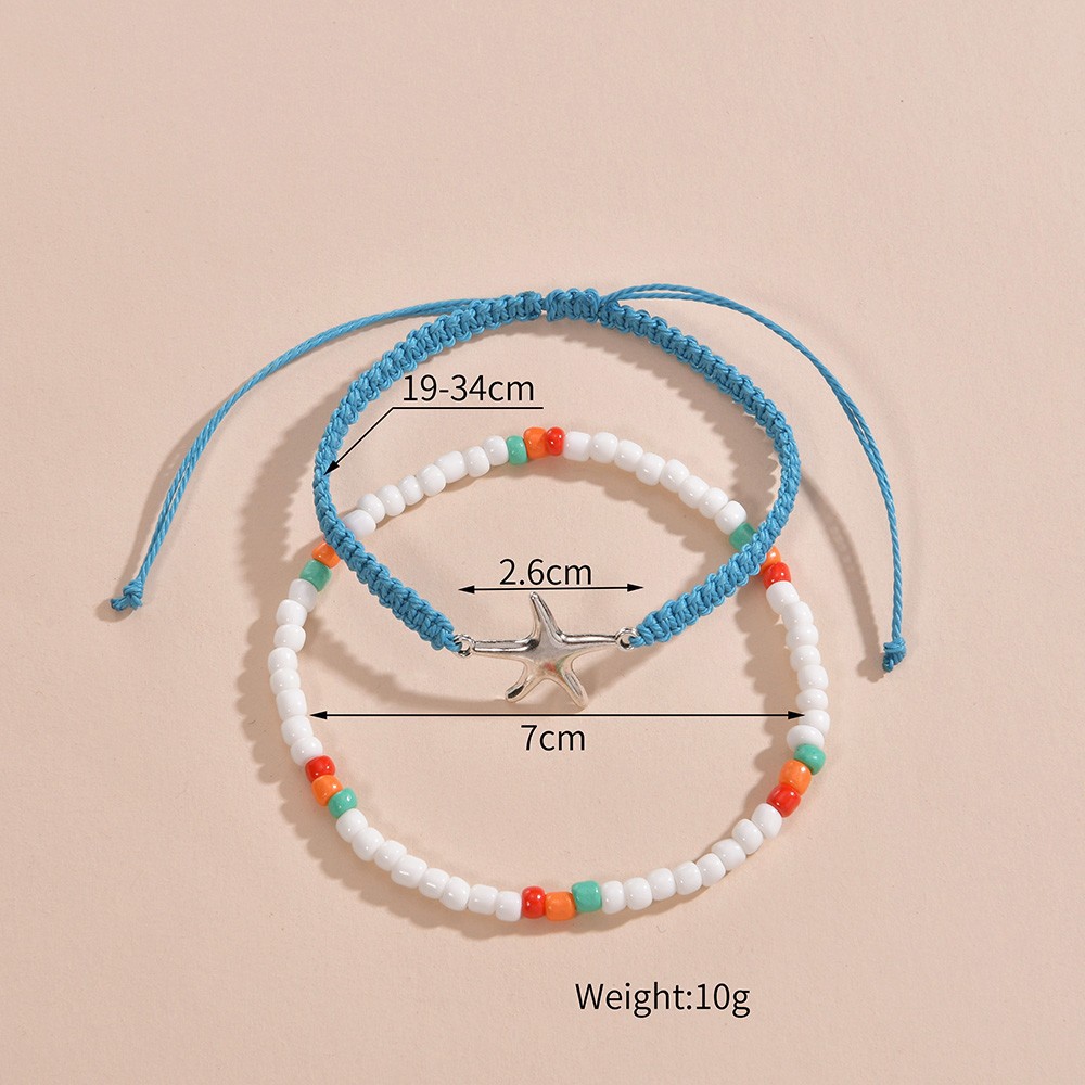 | nameOriginal | Fashion ocean style alloy starfish random color beads elastic anklet woven 2 piece set for beach vacation |