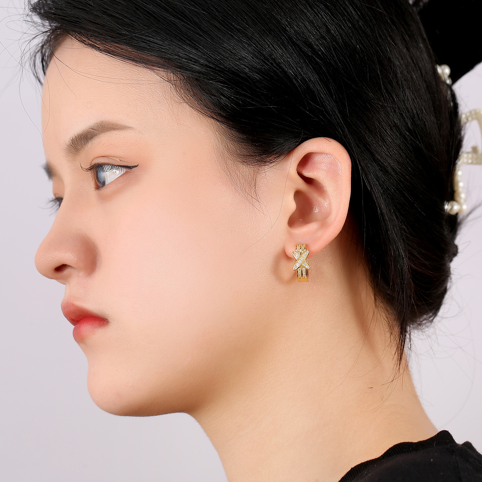 | nameOriginal | Fashion OL commuter all-match earrings high fixed light luxury full diamond inlaid letter X zircon ear buckle cross-border hot sale wholesale |