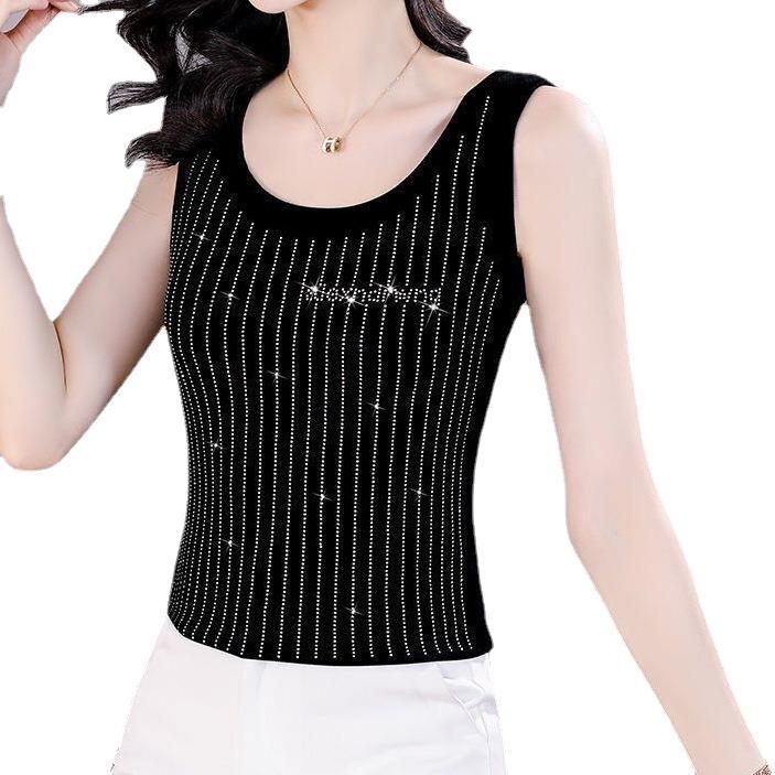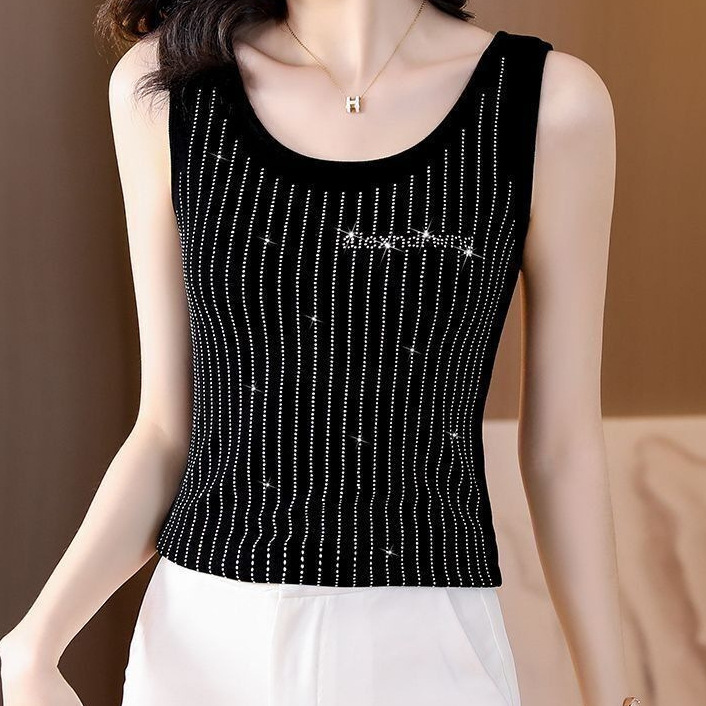 | nameOriginal | Fashion plus size Vest Bright Diamond Sleeveless T-shirt Women's Meat Covering Base Loose Age-reducing Top |